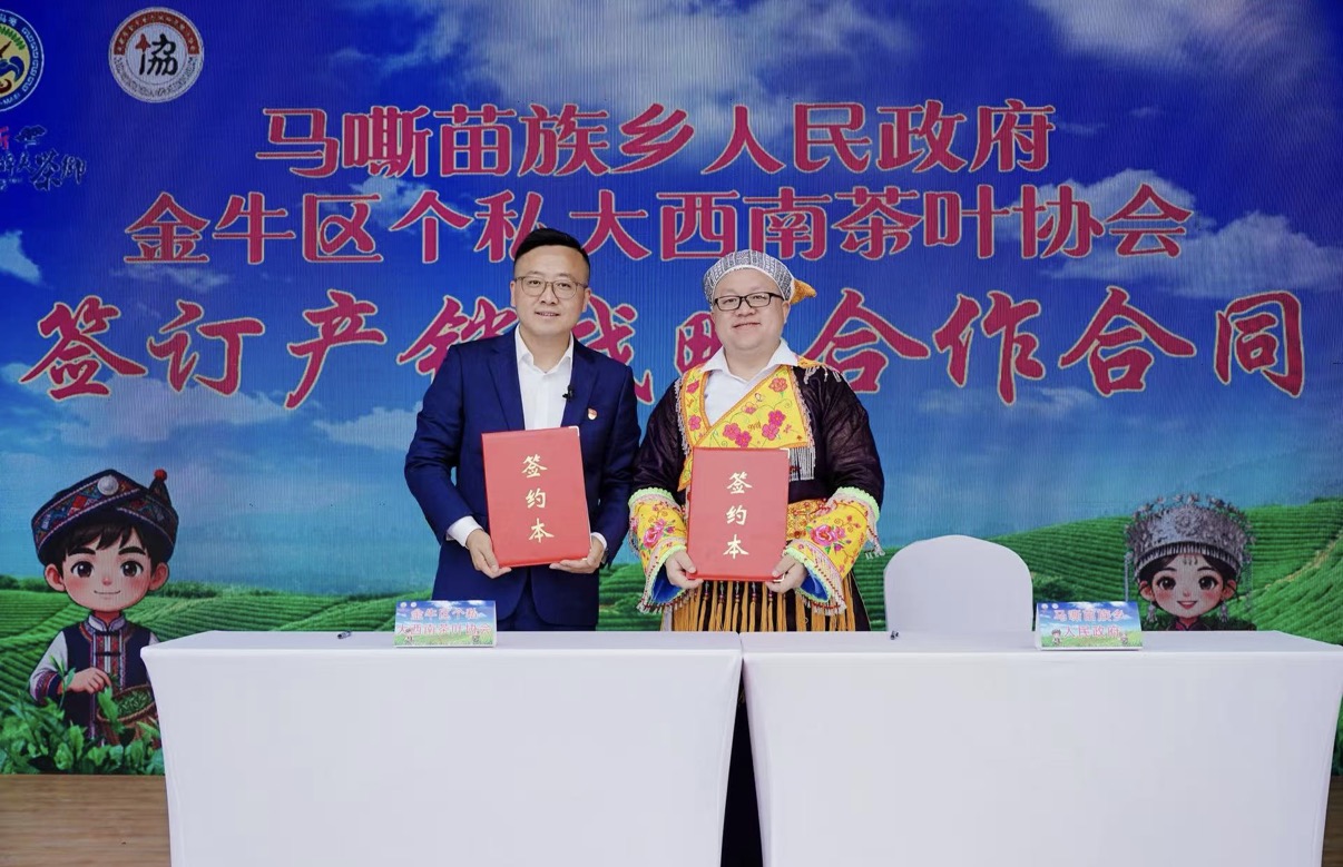 茶香引合作,携手共发展。古蔺县马嘶苗族乡分别与金牛区个私协会大西南茶业分会,成都市武侯区古蔺商会签订产销战略合作合同,大西南茶城茶叶销售企业与马嘶苗族乡生产企业,签订订销合同。双方将在茶叶产销对接、品牌推广、渠道拓展等方面深化合作,为建新茶拓宽成都及周边市场销售渠道,为马嘶苗族乡茶产业发展注入强劲动力。此次签约既是两地产业协作的重要成果,更是政企,商协会携手推动乡村振兴的有力举措。