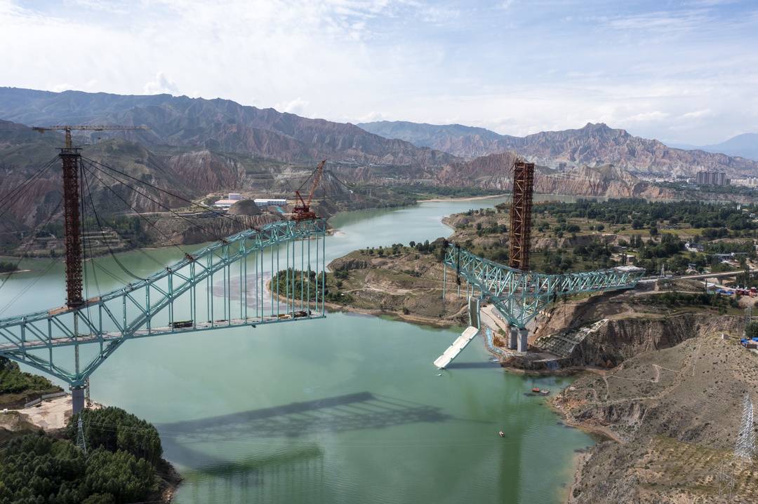 公开信息显示,尖扎黄河特大桥横跨黄河,连接青海尖扎县、化隆两县,主桥由141米、366米、141米三跨连续钢桁系杆拱桥组成。该大桥于2023年11月开建,计划于2025年8月26日合龙。