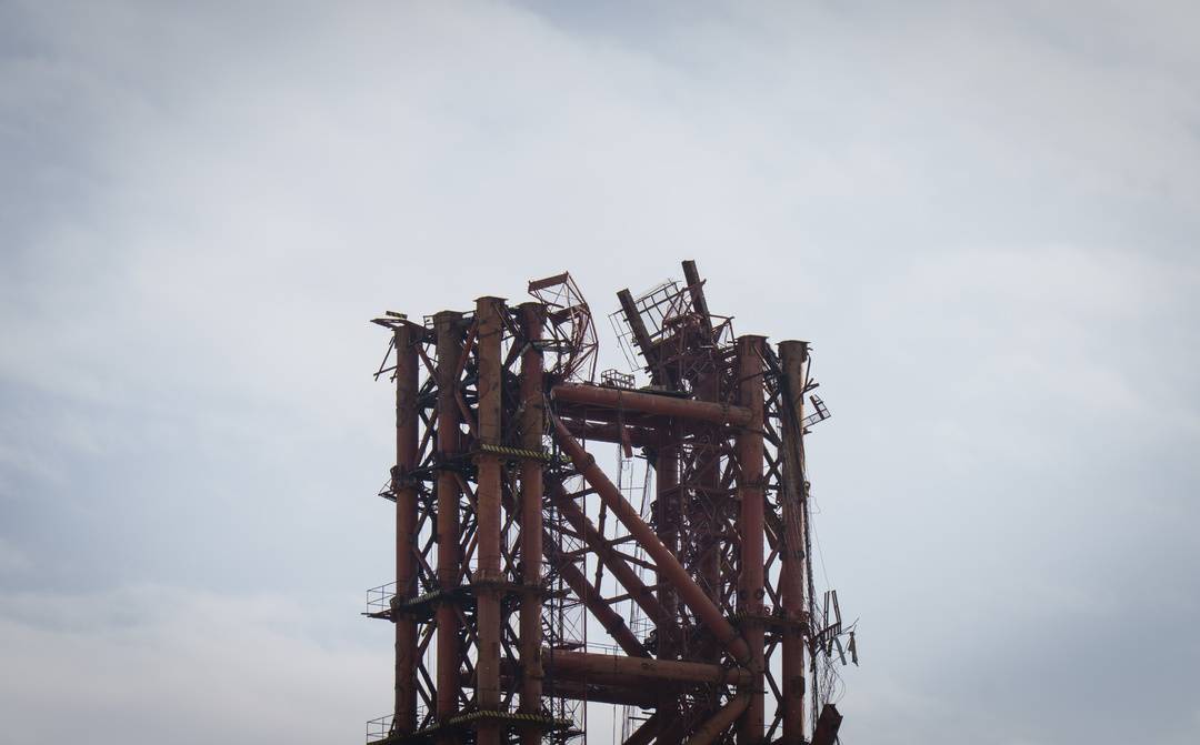 8月23日,尖扎黄河特大桥靠近化隆县一侧的吊索塔架,顶部损毁。受访者供图