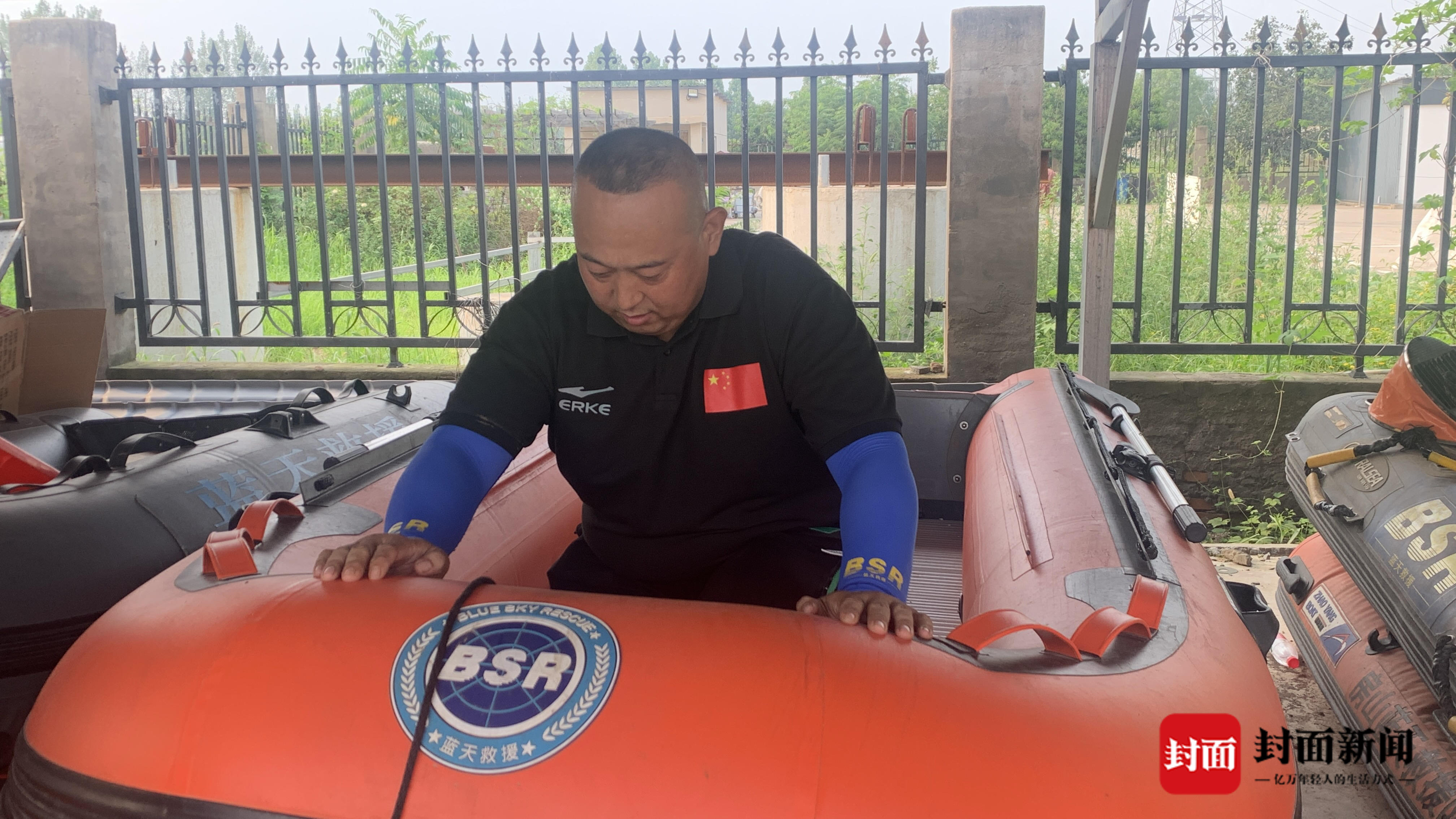 在同两名路政人员一起撤离过程中,刘建民作为掌舵手操控皮划艇躲避河中障碍物。掌舵手需要坐在皮划艇的船沿预判方向,“一休”说:“他比我们要高出四五十公分,这样在浪里是非常危险的。”