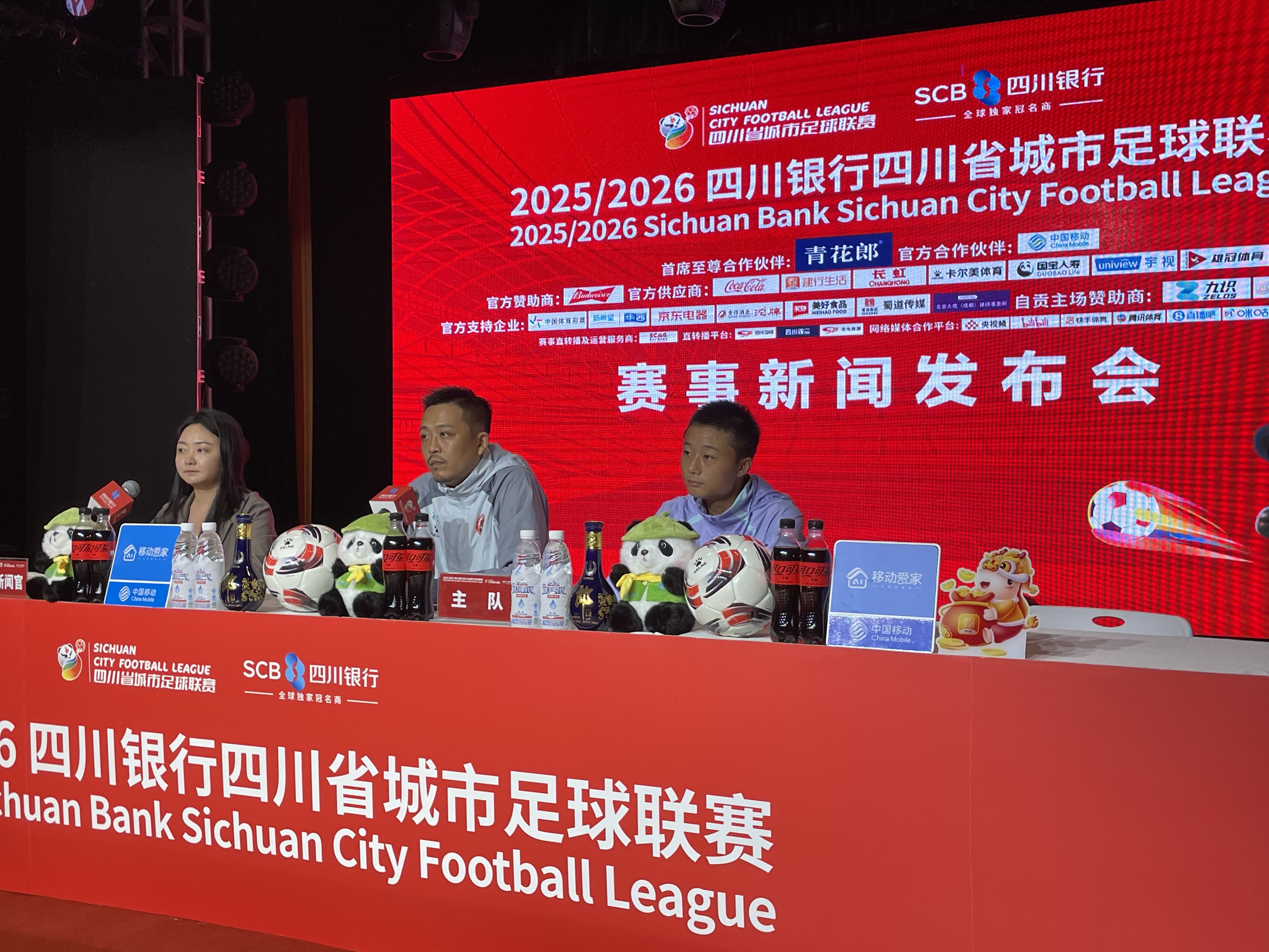 10月11日晚,2025/2026四川银行四川省城市足球联赛赛事新闻发布会,在自贡南湖体育场举行。主客队分别进行了新闻发布,双方主教练也介绍了赛事准备情况。