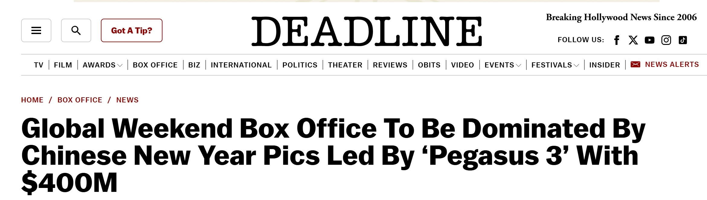 美国媒体“Deadline”网站报道截图