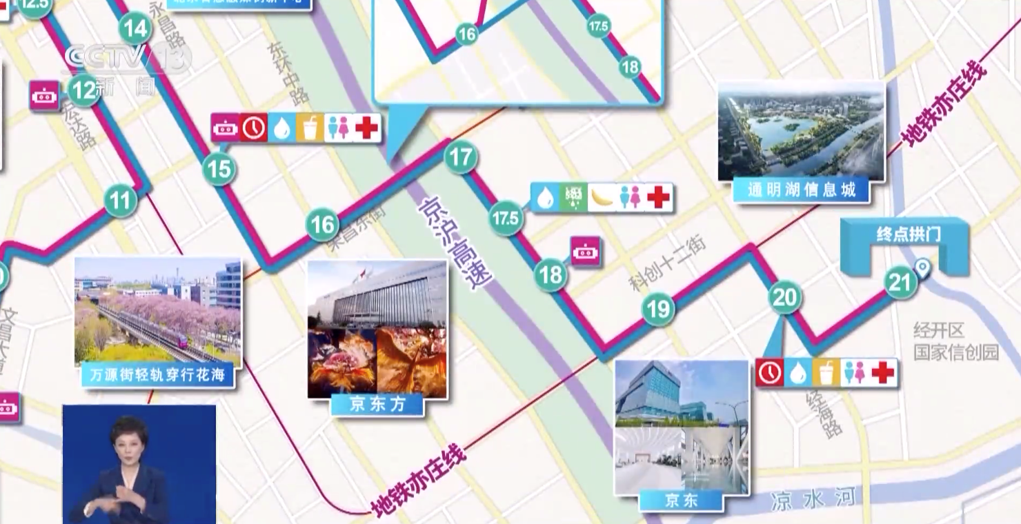 此次人形机器人半程马拉松的赛道起点,设在南海子公园一期南门,终点为通明湖信息城,全长超21公里。机器人将途经南海子公园、泡桐大道、文博大桥、通明湖公园等北京经开区的标志性点位。