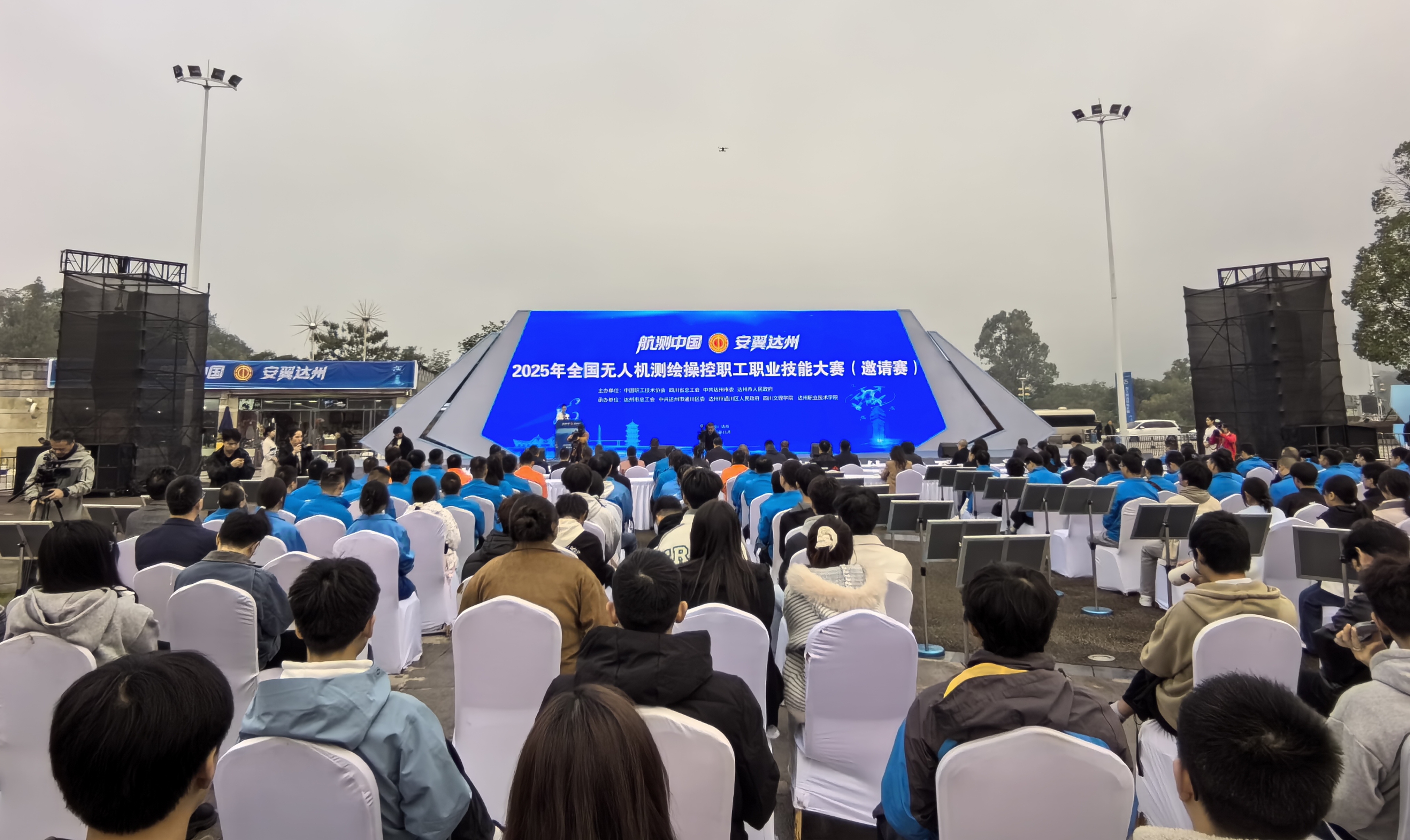 11月4日上午,随着两架装扮成凤凰模样的无人机在莲花湖畔的上空盘旋起舞,标志着2025年全国无人机测绘操控职工职业技能大赛正式在四川达州市通川区开幕。来自浙江、河南、广东、甘肃、重庆及省内各地市州的27支队伍51名选手参加此次大赛。在莲花湖畔的巴山大剧院广场上,还举行了无人机特展,各种机型的无人机让达州市民大饱眼福。