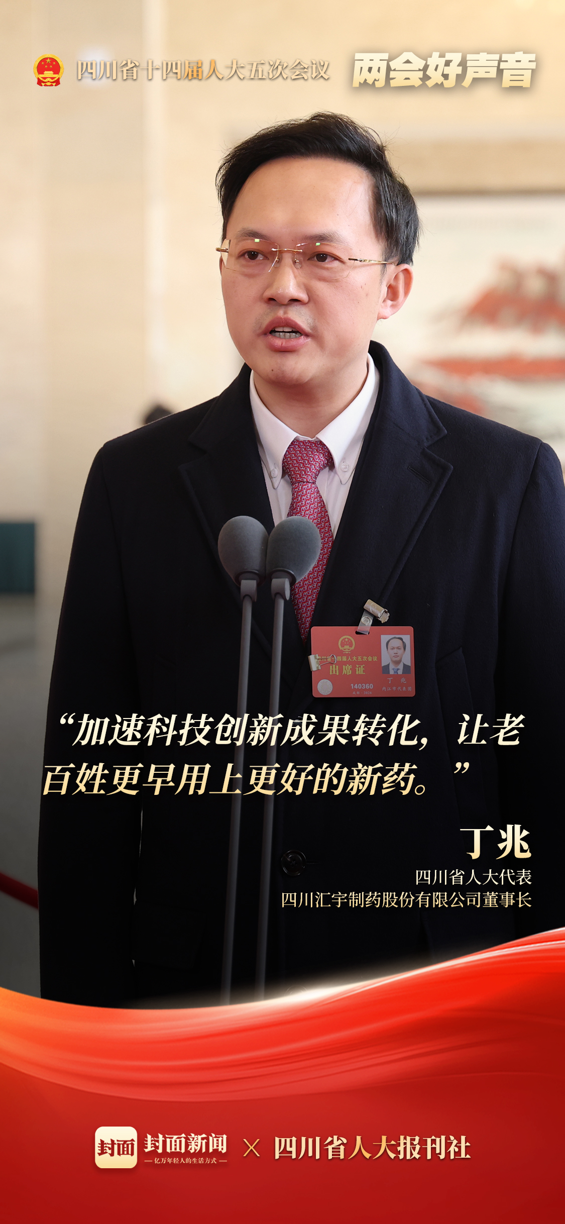 今年丁兆带来的建议是,推动“人工智能+医药”融合,并建议系统助力川企“出海”。他的履职,是让企业能从“价格战”的泥潭中抽身,转向“价值战”的全球赛场。他的故事证明,四川生物医药的选择,是拒绝低端“内卷”,用最前沿的科技创新,去抢夺定义未来的话语权,为民生着上科技底色。