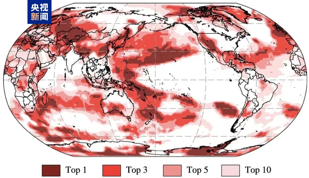 2025年东亚北部和南部、中亚大部、欧洲东部、北美洲北部和南部、南极洲大部及太平洋西北部、西部以及东南部、印度洋南部和大西洋中部年平均温度均位列历史前三且中心区域突破高温历史纪录。