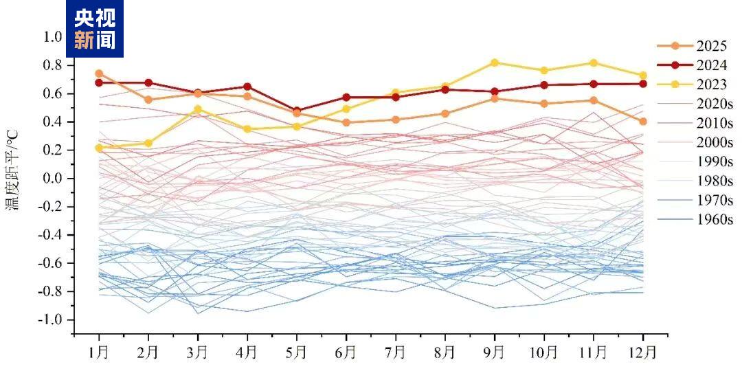2025年1月,全球地表平均温度突破历史同期极值。过去三年(2023—2025年)是有观测记录以来最暖的三年,全球气候变暖趋势在持续。