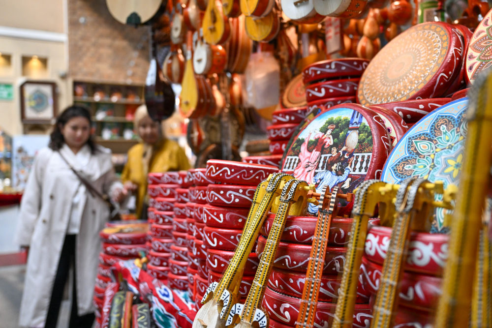 10月1日,位于新疆乌鲁木齐市的新疆国际大巴扎处处洋溢浓厚节日氛围,人们在欢声笑语中尽享节日欢乐,感受新疆魅力。