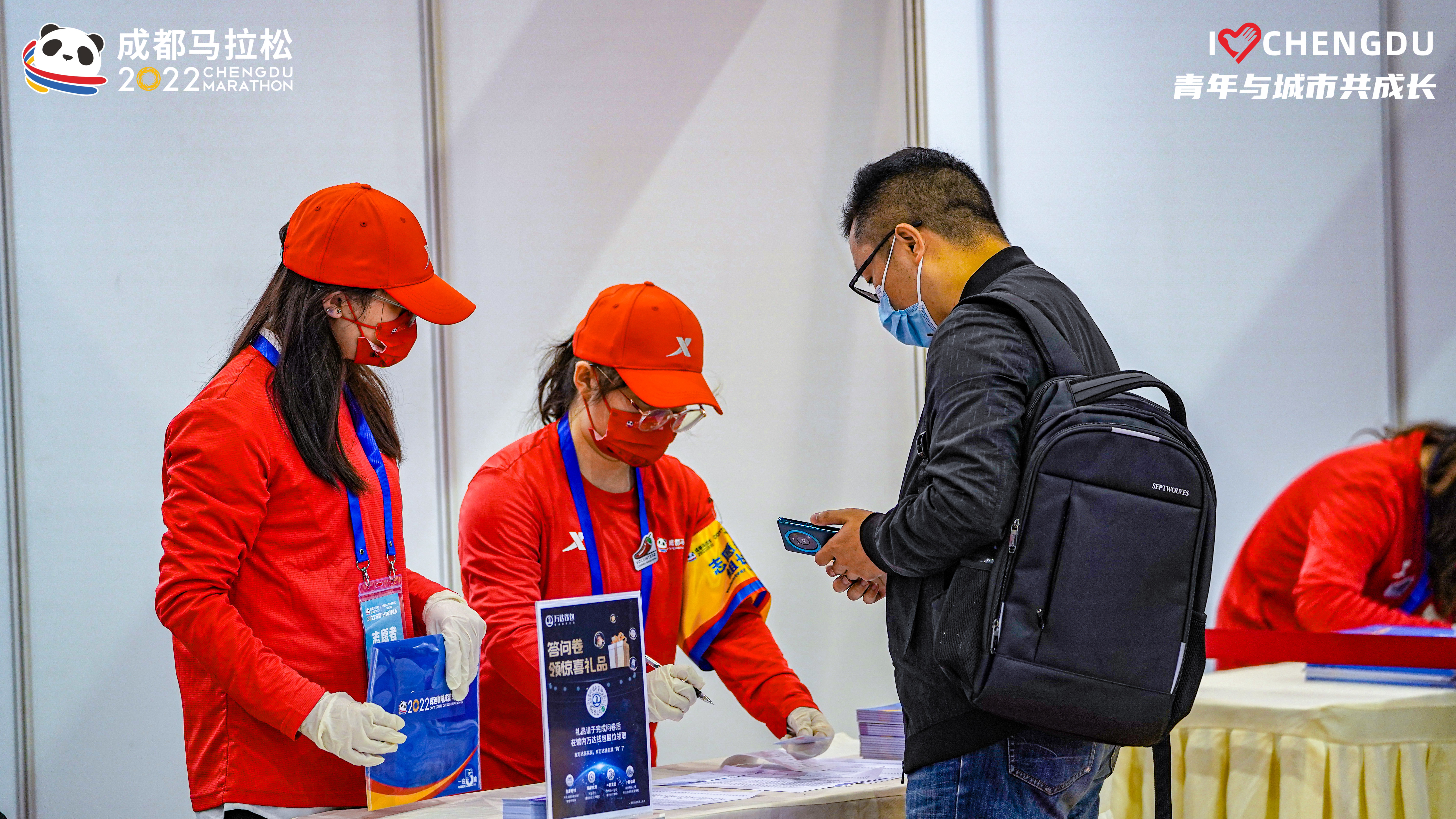 在现场志愿者们的协助下,参赛物品领取各项工作有条不紊地进行着。来自成都艺术职业大学的342名“小辣椒”是最先进入服务岗位的志愿者。“成马参赛选手领物从今天中午12点正式开始,为了确保大家在领取物品时顺利、流畅,我们早上8点就进入岗位开始了各项准备工作。”来自成都艺术职业大学的蔡归帆老师告诉记者。据共青团成都市委现场工作人员介绍,赛包发放工作将一直持续至19日。