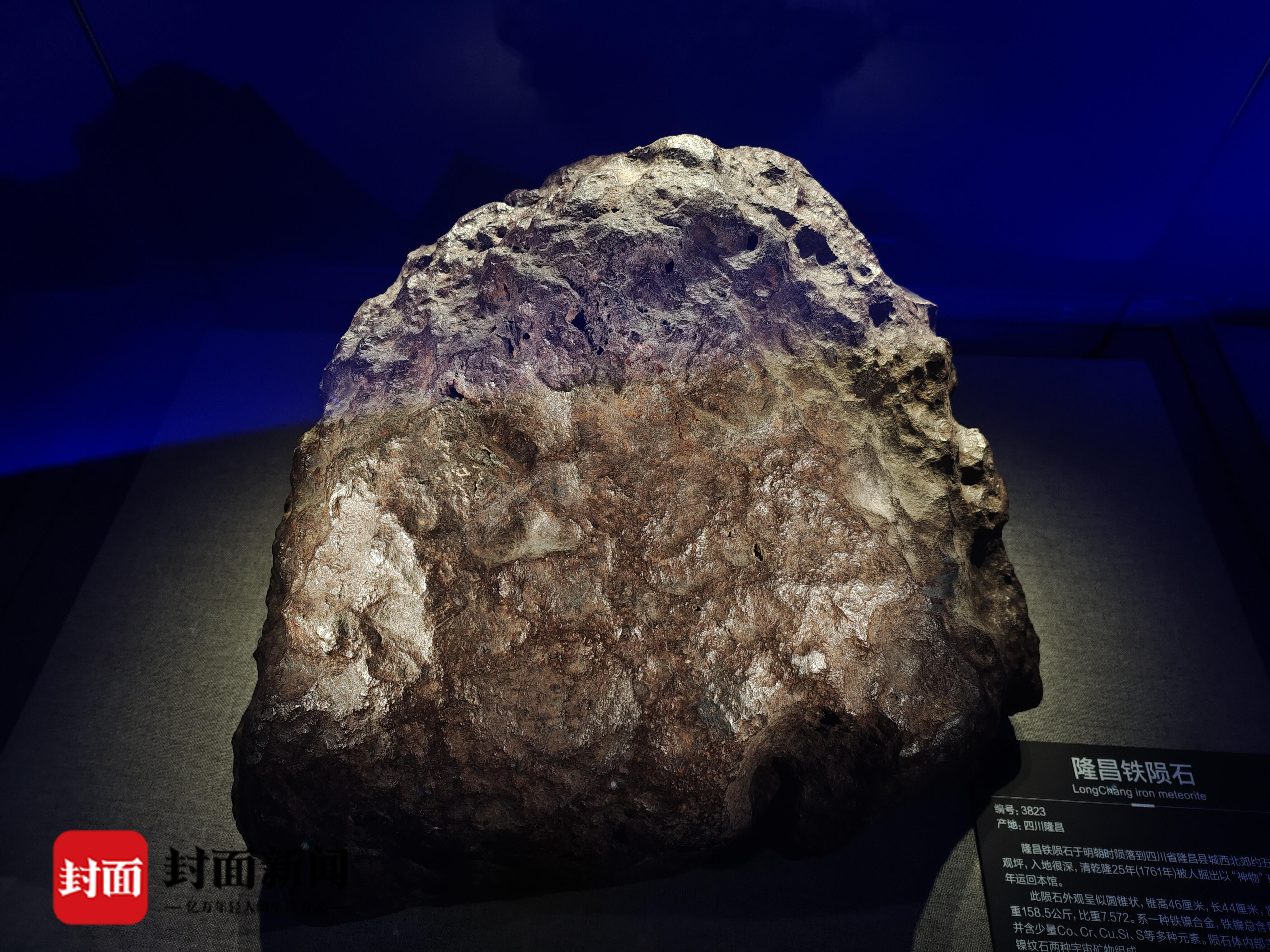 四川《隆昌县志》十二卷中记载“相传明邑人熊球未遇时,以买草为生,于道观坪草野内得一物,紫色,似石非石,似铁非铁,扣之有声”,说的就是这位“天外来客”。裴维德介绍,它重约158.5公斤,于明朝年间“造访”地球,清朝乾隆年间被人挖掘出来当作“神物”供奉,1972年为成都理工大学博物馆收藏,是四川已知最大、保存时间最长的铁陨石。