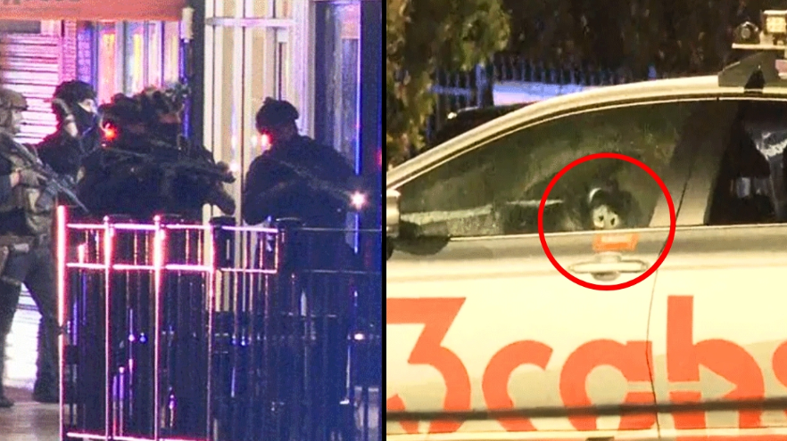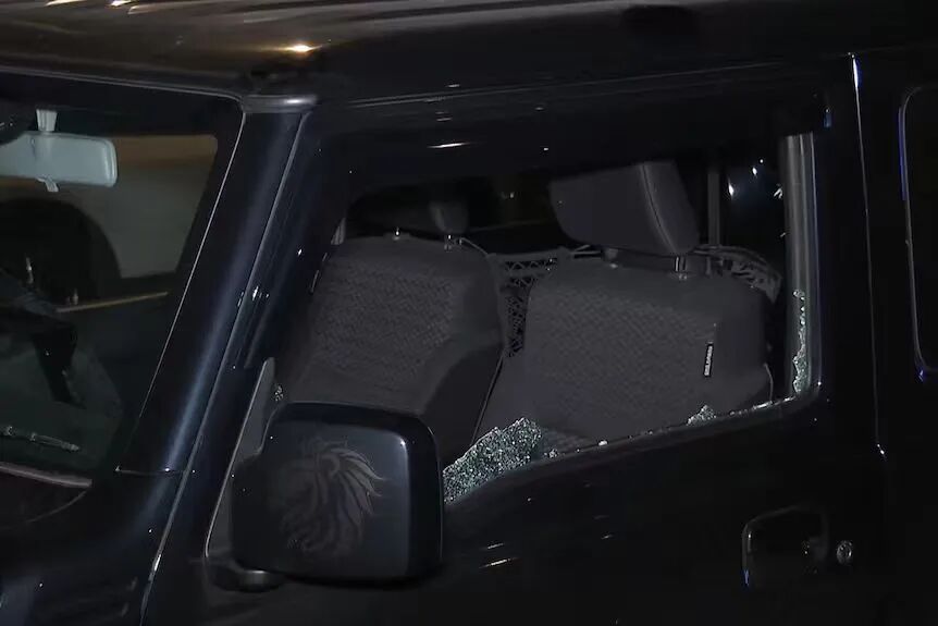一辆汽车的车窗被枪声震碎。图源:澳大利亚广播公司