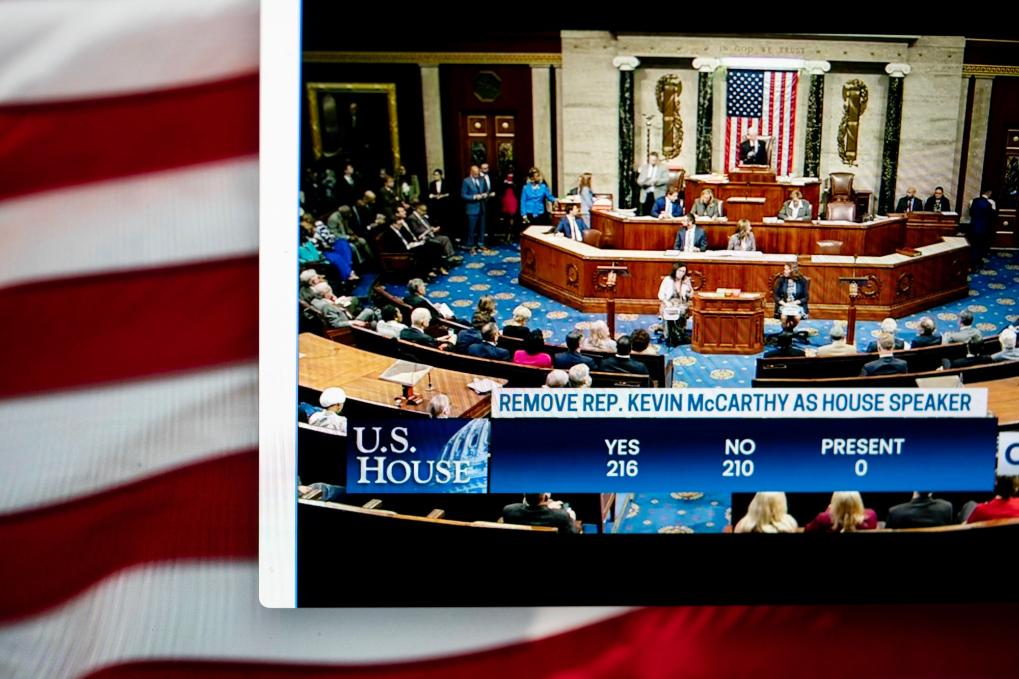 美国众议院3日以216票赞成、210票反对的结果罢免麦卡锡。这项决议由佛罗里达州共和党籍联邦众议员马特·盖茨提出,他和另外7名同僚以及全部参与表决的208名民主党人一起投下赞成票。