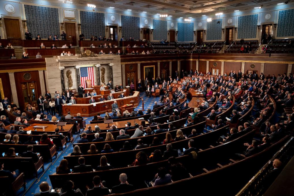 这是1月6日在美国华盛顿国会拍摄的众议院议长选举现场。新华社记者刘杰摄