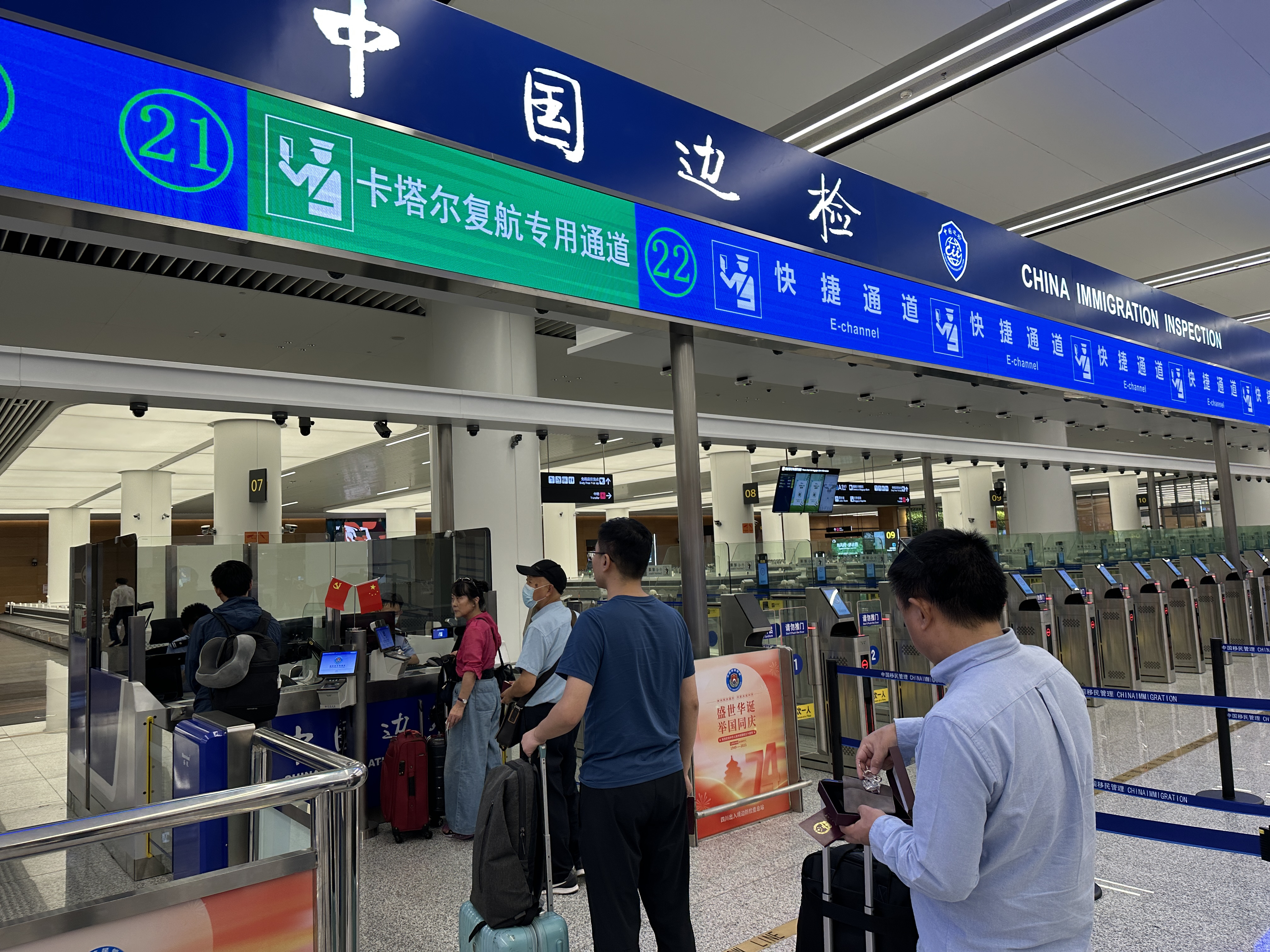 今年截至9月22日,成都边防检查站已检查出入境航班15000余架次、人员175.2万余人次,同比分别增长约92%和656%。