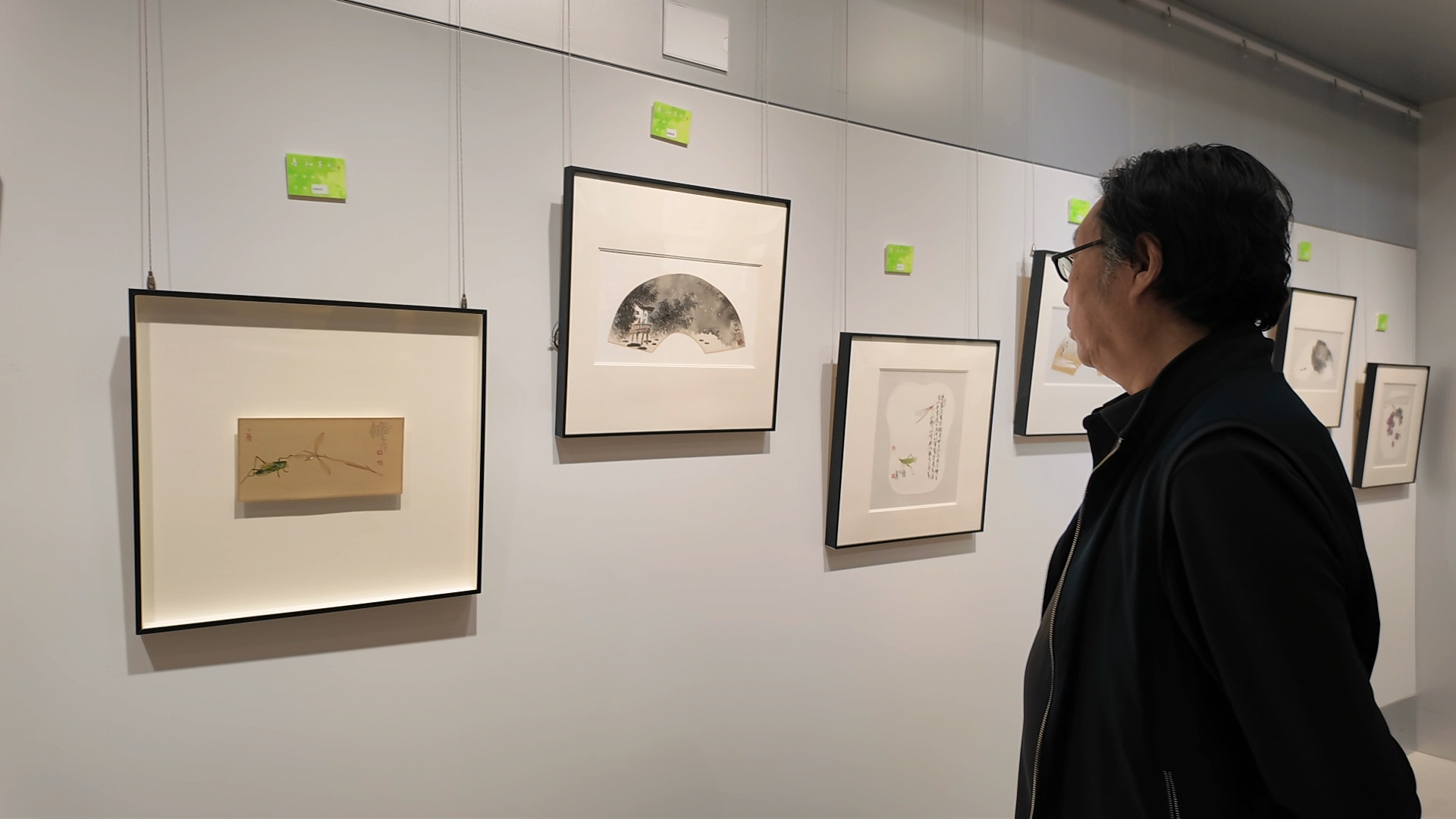 当天展出的作品多作于扇面、小幅之上,形制小巧,意趣丰盈,气象万千。秦天仑深耕山水数十载,笔墨苍润古雅,意境高远澄明;王吉祥笔下的“吉祥葡萄”清润饱满,藤蔓生机盎然,钟真则工兼写,灵动小虫、俏皮小鸟生机跃然;王宝明的花卉鸟虫小品疏朗潇洒,更以精妙书法为诸位佳作题款题诗,书画合璧;康杰的山水清雅幽远,于尺幅间写尽林泉高致,静气袭人。五人笔墨相映成趣,相得益彰。著名花鸟画家秦天柱先生与来自金陵的大痴先生现场品评,引来众多观众倾听。