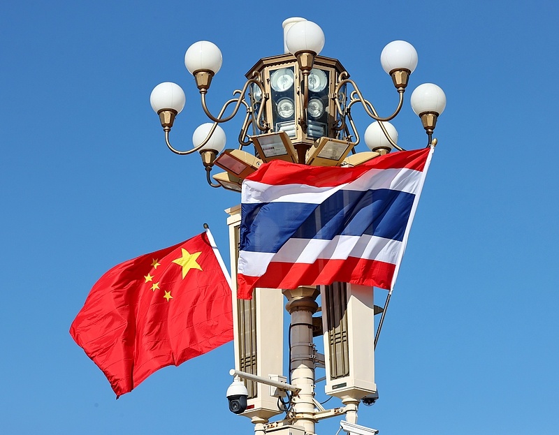 日前,北京天安门广场悬挂中国和泰国两国国旗,欢迎泰国国王哇集拉隆功访华。(图源:视觉中国)
