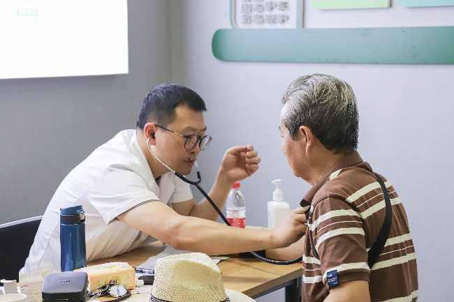 家住附近的周阿姨今年70岁了,她常年患有高血压和糖尿病,并且14年前动过冠脉支架手术。她一听说这次活动,提前两周就报名登记。周阿姨说,“这个活动好,大热天不用跑老远去医院挂号。医生都很专业,我查完没得事的,放心了。”
