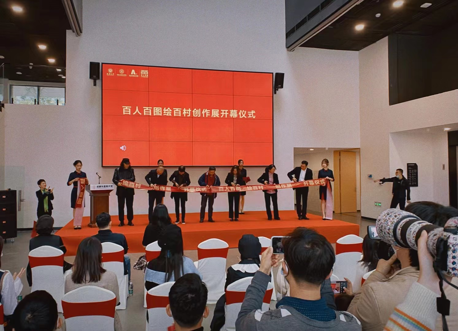 11月8月下午,由成都大学中国-东盟艺术学院、中国-东盟艺术学院美术与设计学院、成都大学党员教育基地及团委联合举办的“百人百图绘百村”创作作品展开幕。