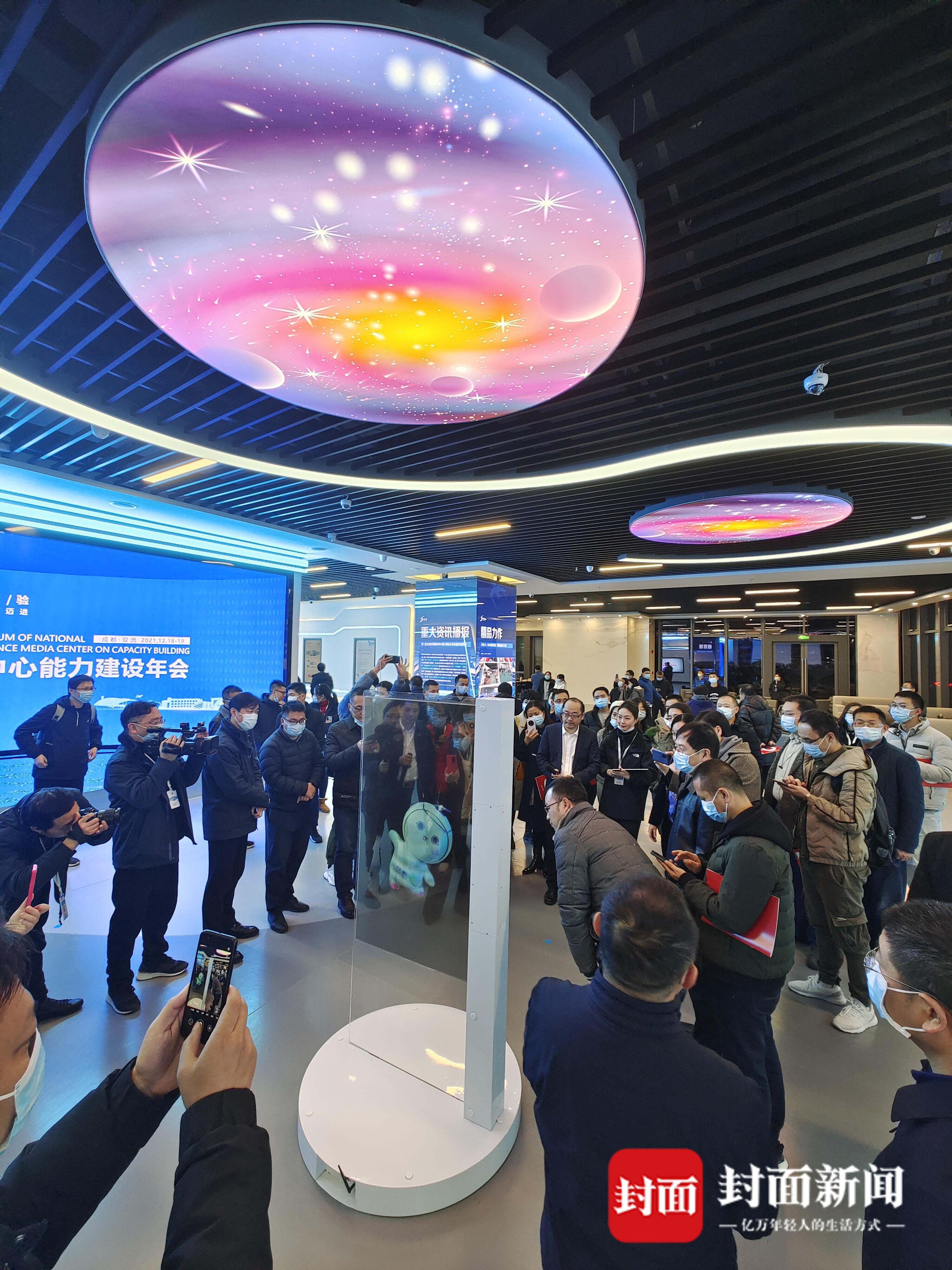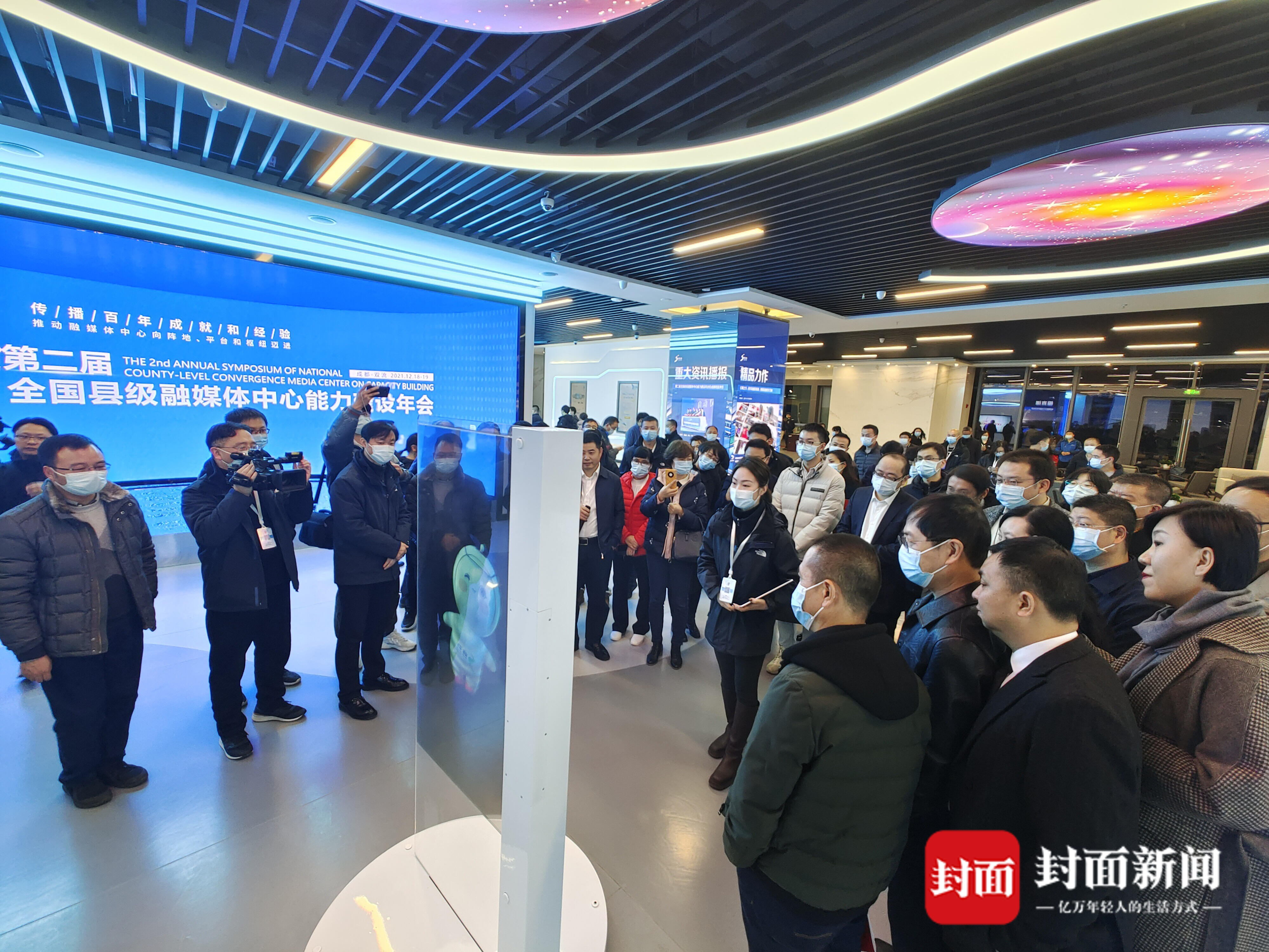 数据可视、体感互动、沉浸体验、未来创作……12月18日晚,在经历了一天的头脑风暴后,第二届全国县级融媒体中心能力建设年会部分嘉宾,来到位于成都芯谷的双流区融媒体中心参观,并点赞由封面传媒技术承建的智慧展厅。