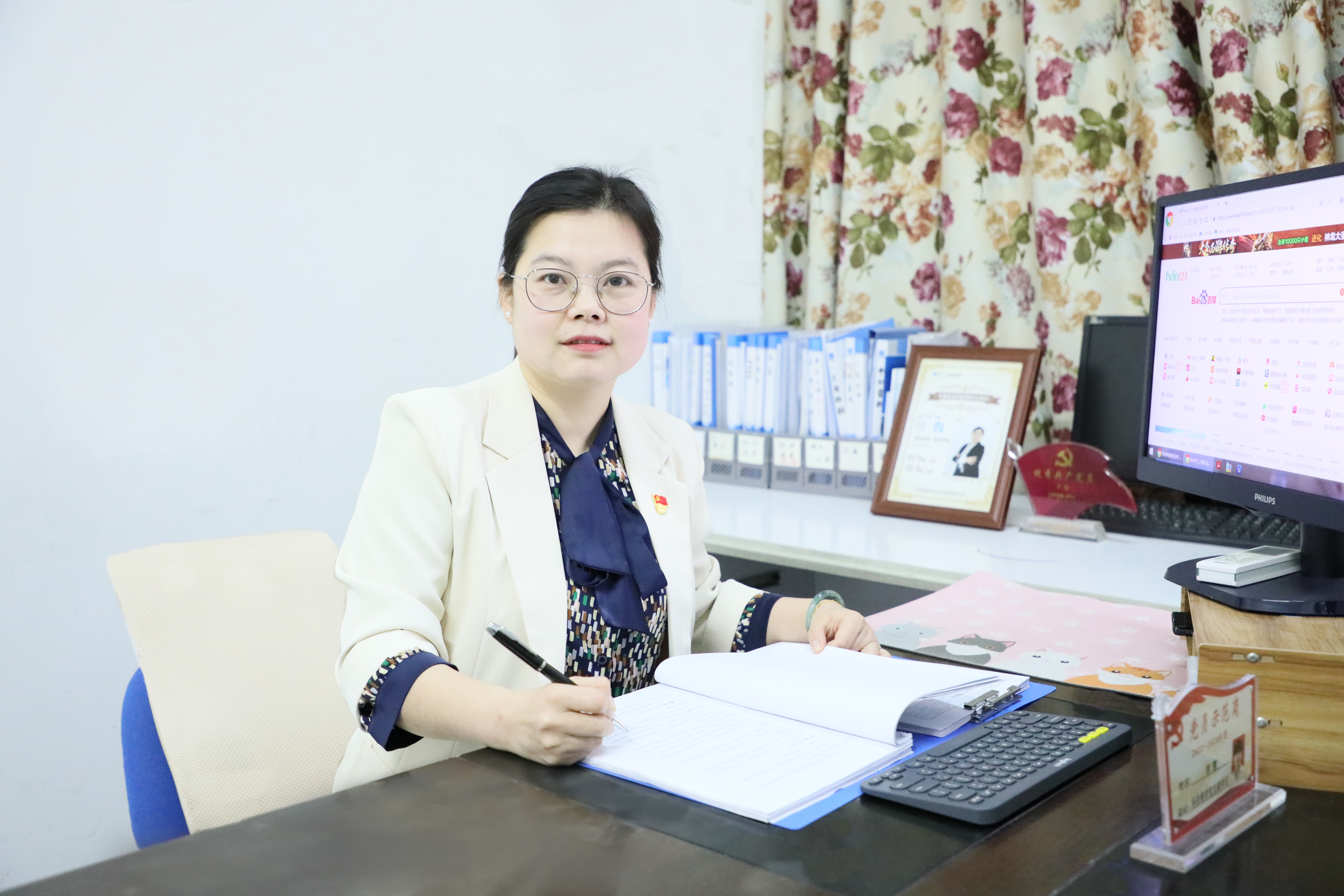 干练的马尾辫,白皙的脸庞,她戴着一副精巧的银边眼镜,知性而优雅;镜片后那双炯炯有神的大眼睛,扑闪着坚毅而智慧的光芒。初见李慧,脑海中“高知女性”的印象立马浮现!