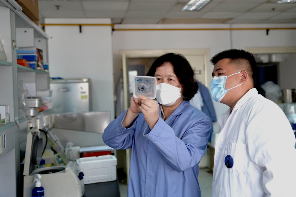 8月29日,在中国科学院分子植物科学卓越创新中心实验室,郑慧琼研究员(左)和学生观察实验结果。新华社记者 张建松 摄