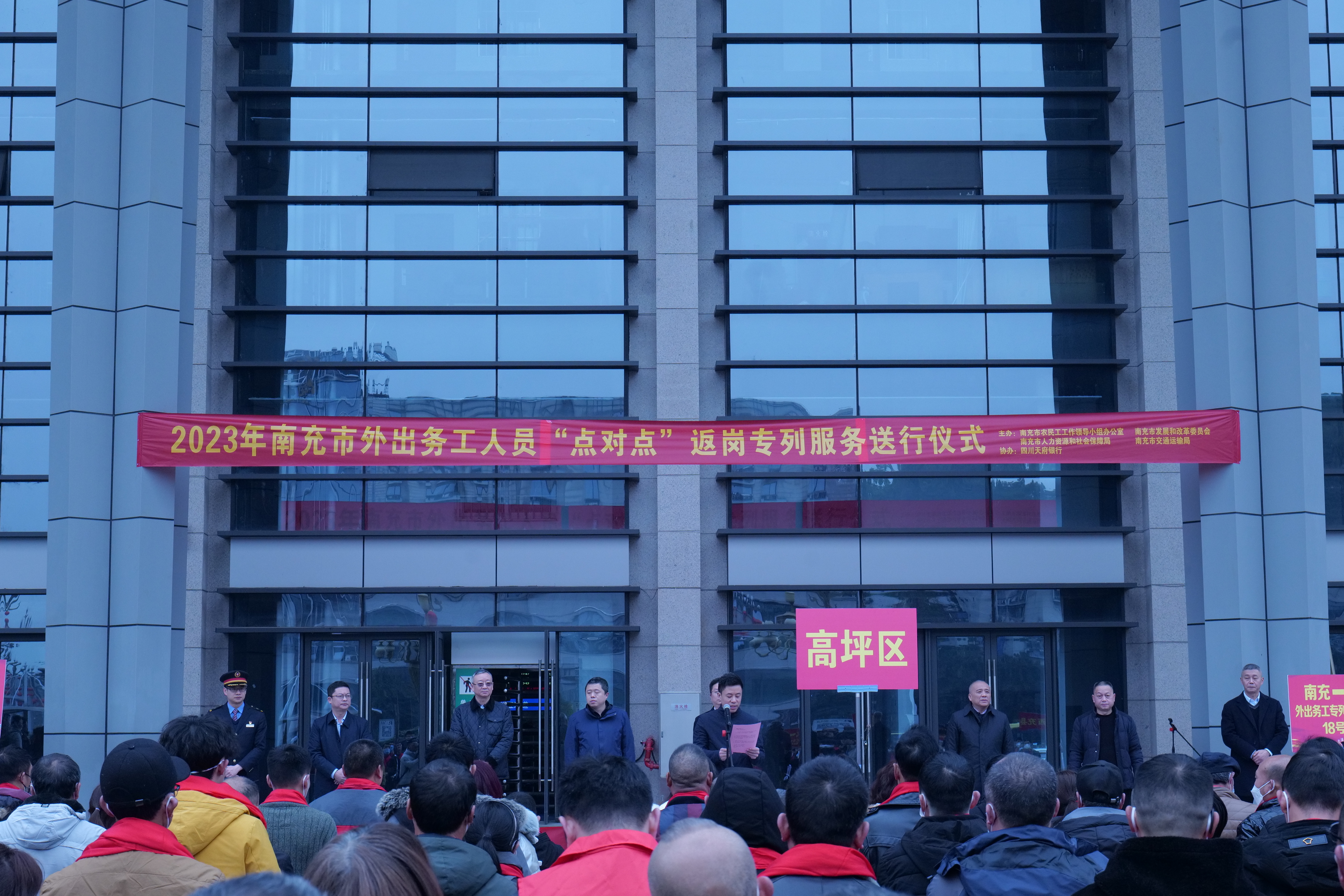 2月6日,南充火车站门前的广场人潮涌动,2023年南充市外出务工人员“点对点”返岗专列服务送行仪式举行,来自南充市各县(市、区)的数百名务工人员,将免费搭乘前往上海的列车,踏上新一年的返岗征程。