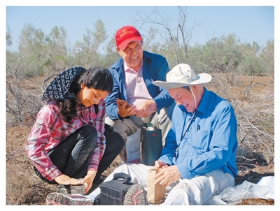 魏江春(右)在新疆采集地衣标本。 受访者供图