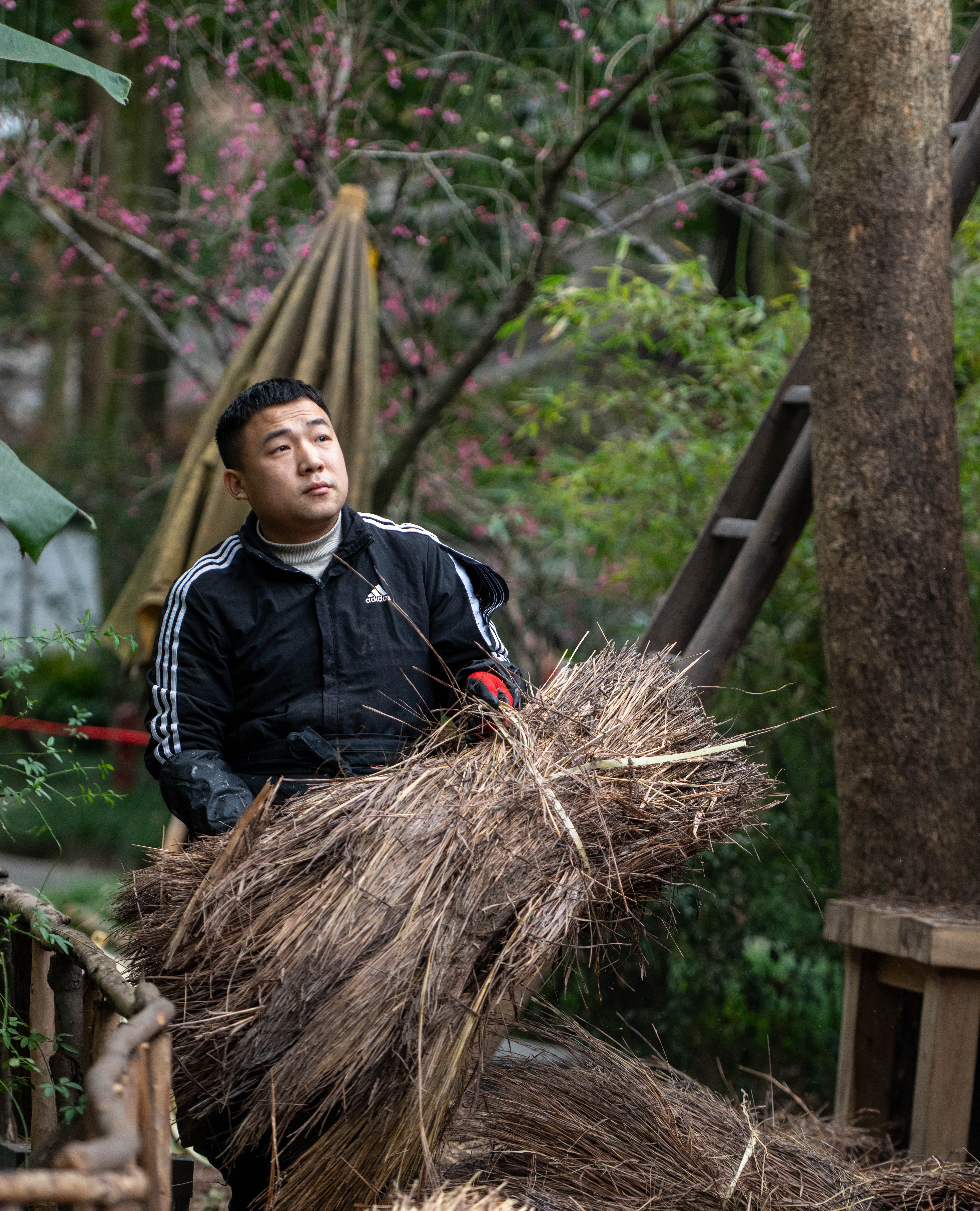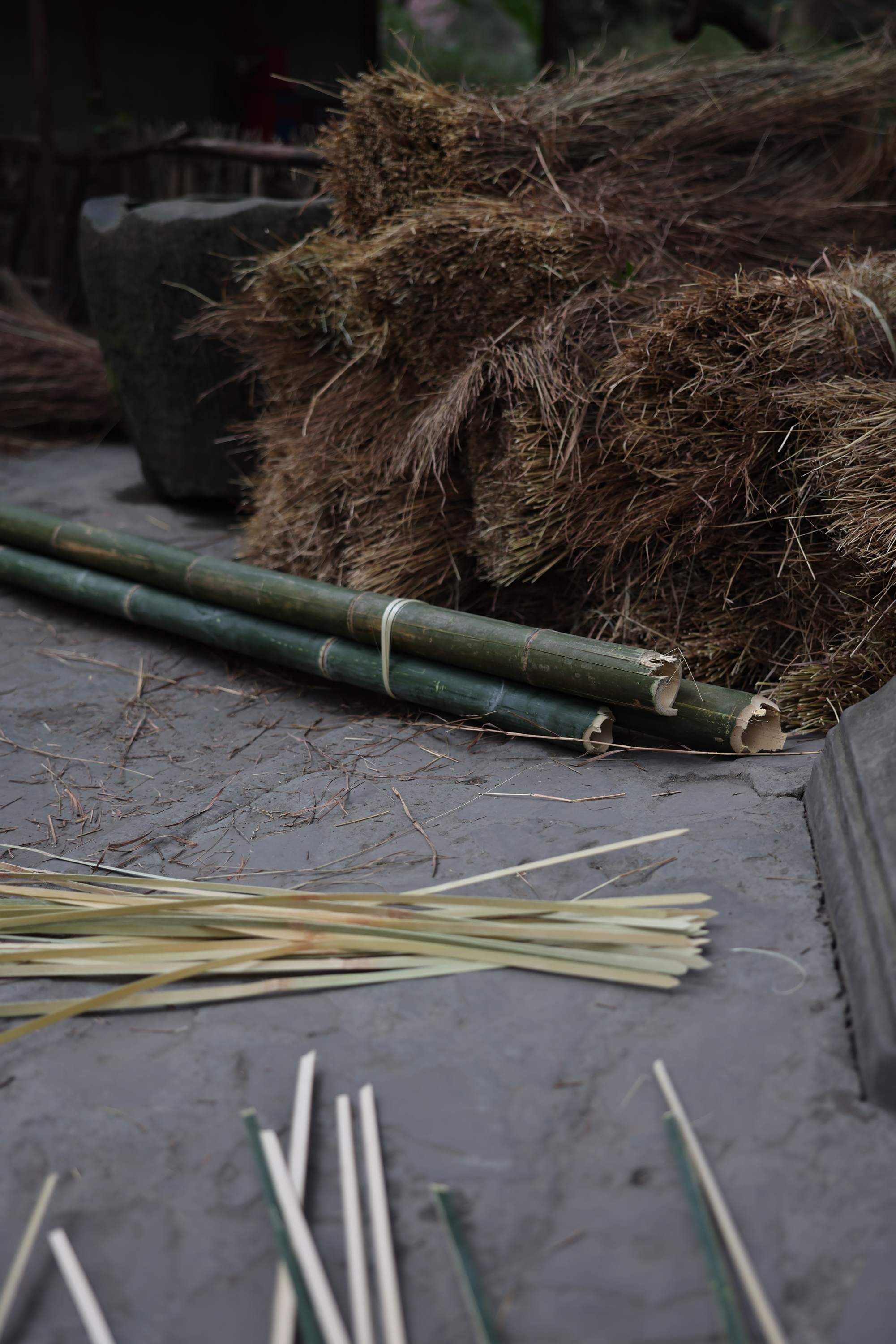 1月22日,成都杜甫草堂博物馆,维修中用到的茅草采自成都周边,竹子就生长在杜甫草堂博物馆里。
