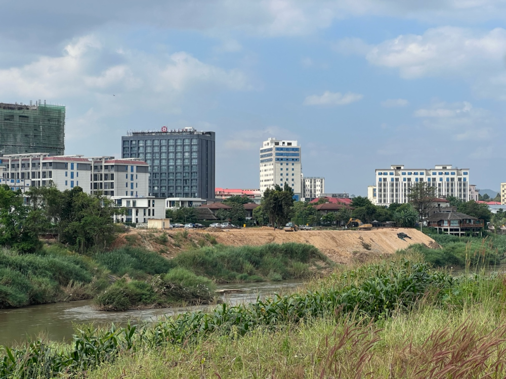 2023年11月28日,从泰国境内拍摄的缅甸境内建筑。(新华社记者林昊摄)