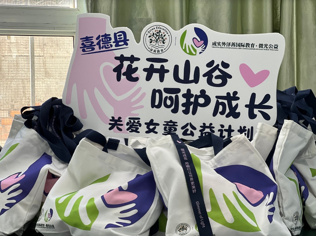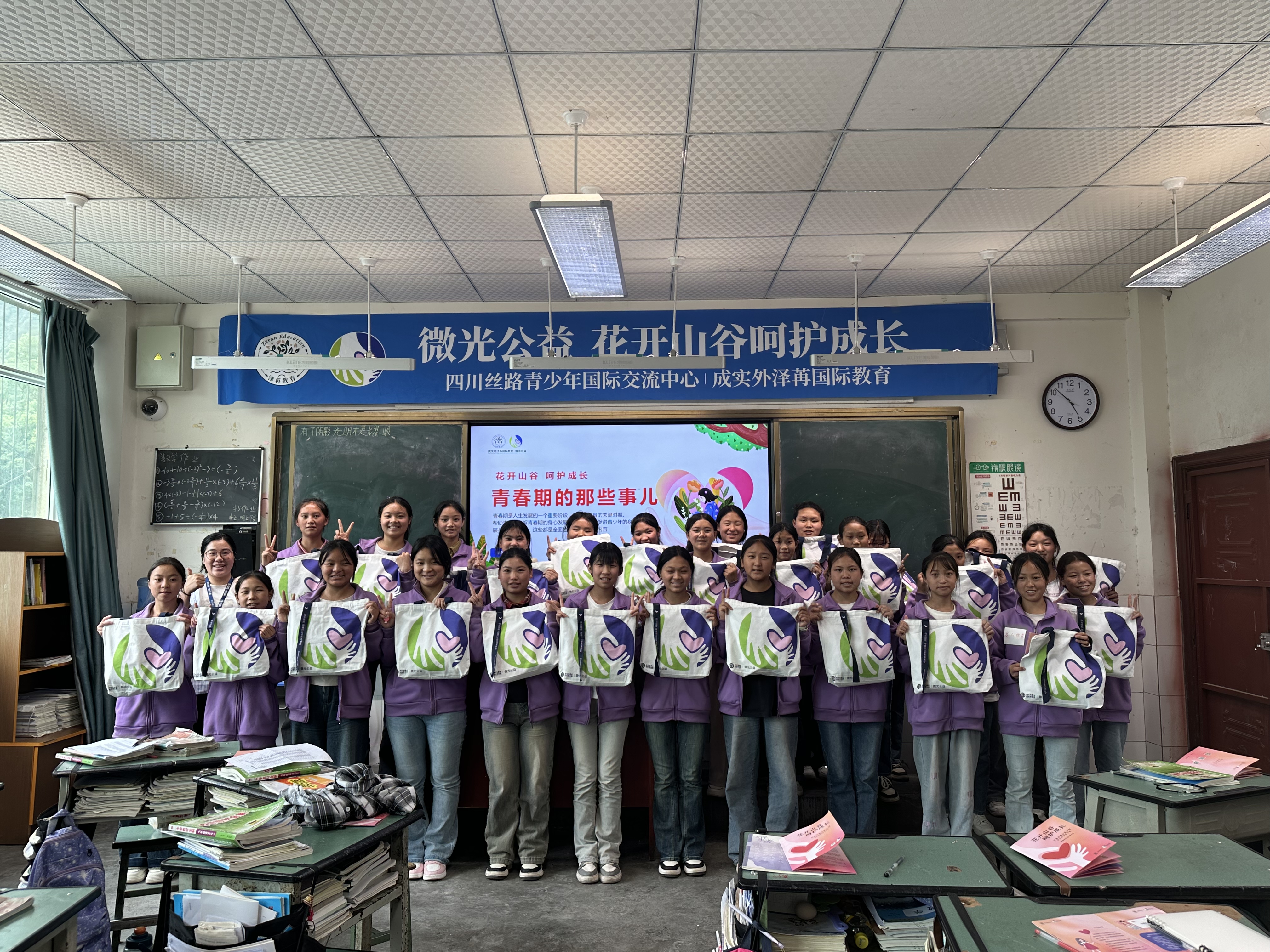这场“青春分享会”,是成实外泽苒国际教育-微光公益发起的“花开山谷·呵护成长”关爱女童公益计划的活动之一。在偏远、欠发达地区,由于缺乏足够的教育资源和家庭支持,许多青春期女生在成长过程中遇到了很多困惑和烦恼,该公益计划正是为了帮助这部分女孩,旨在通过物资帮扶、知识科普、身心关爱等形式,用爱心和行动传递女性温暖。