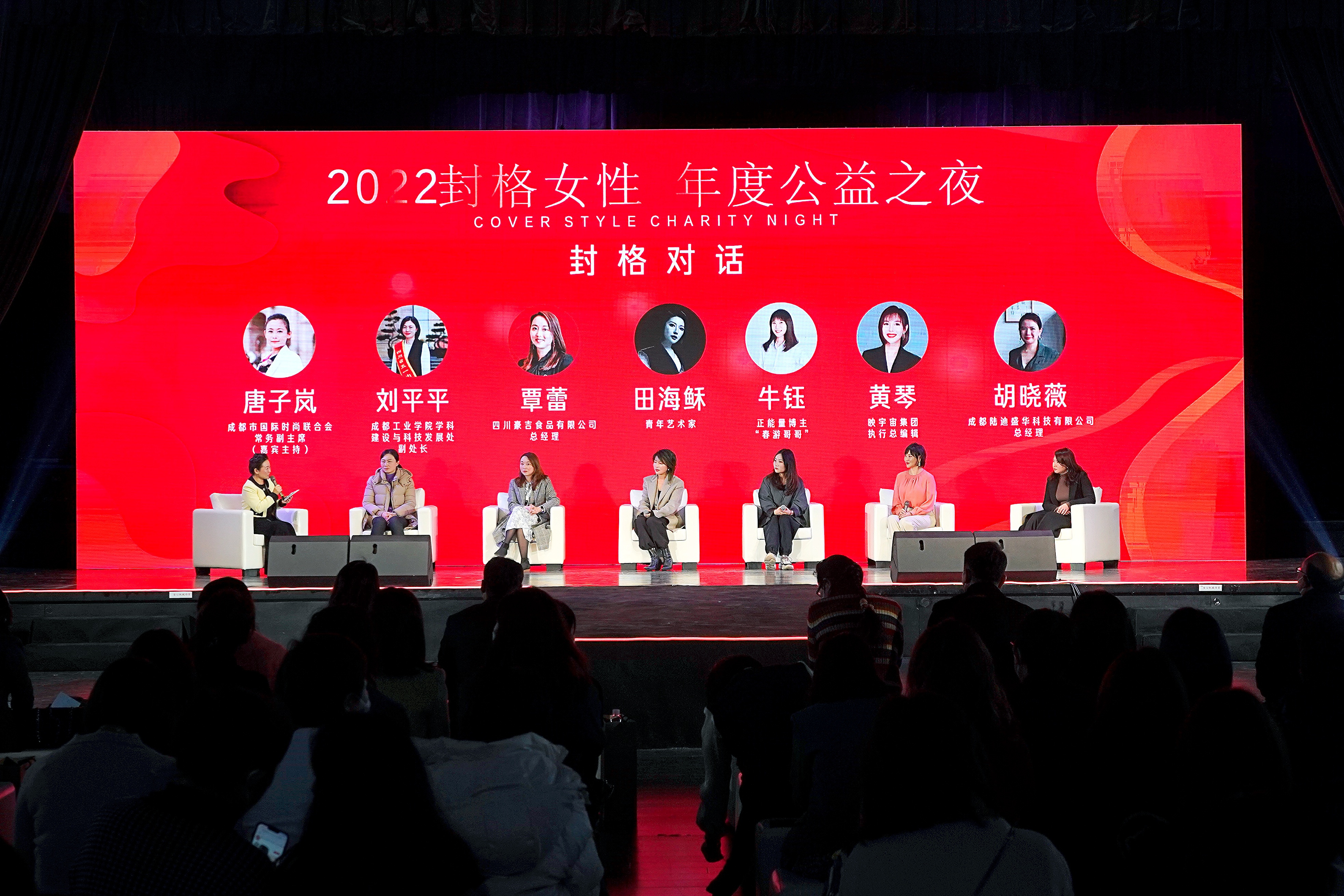 在12月28日晚举行的2022封格女性年度公益之夜圆桌论坛环节,在成都市国际时尚联合会常务副主席唐子岚的主持下,成都工业学院学科建设与科技发展处副处长刘平平、四川豪吉食品有限公司总经理覃蕾、青年艺术家田海酥、正能量博主“春游哥哥”牛钰、映宇宙集团执行总编辑黄琴、成都陆迪盛华科技有限公司总经理胡晓薇围绕活动主题“智美、创想、启迪未来”,结合自身成长经历分享了她们的看法和经验。