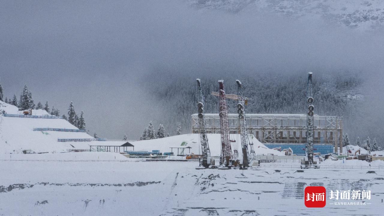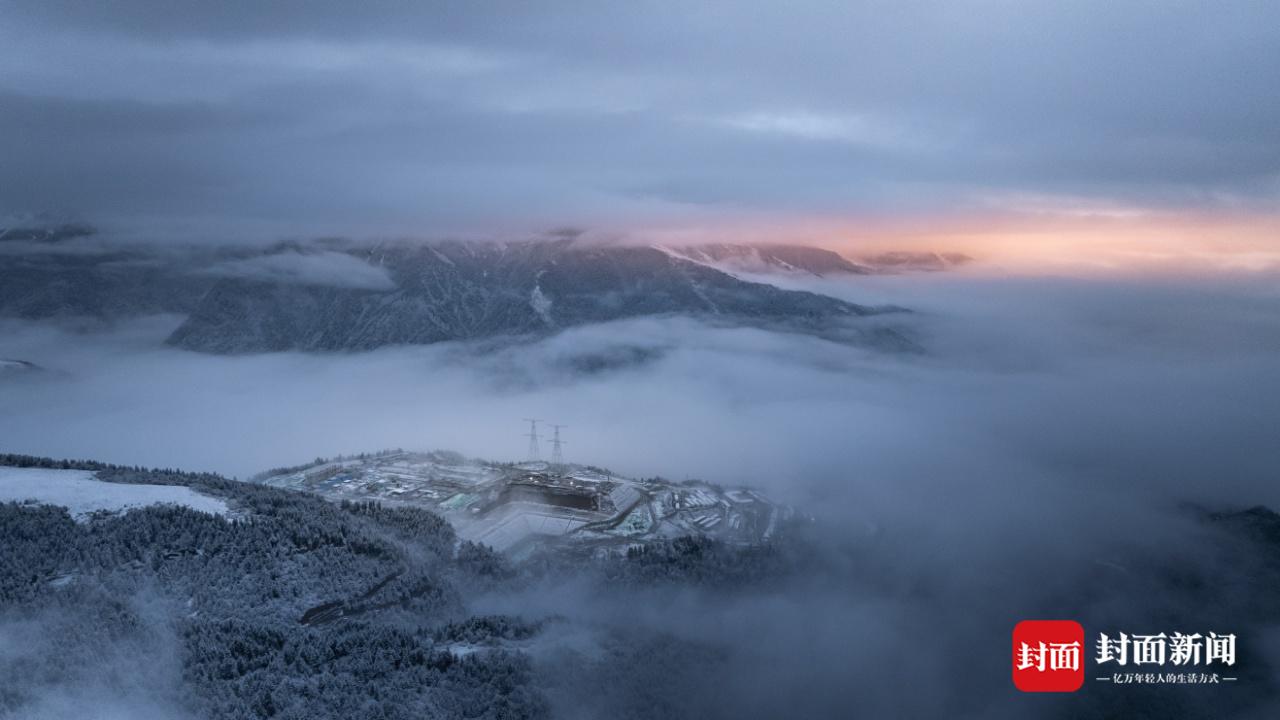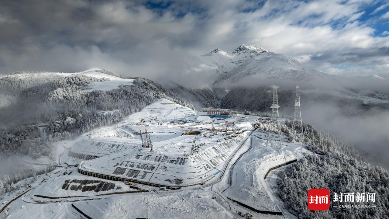 2025年10月27日,阿坝1000千伏变电站建设现场白茫茫一片。