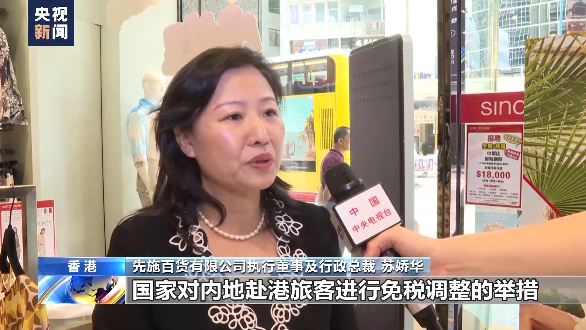 先施百货有限公司执行董事及行政总裁 苏娇华:对内地赴港旅客进行免税调整的举措,无疑将进一步(加强)内地与港澳之间的旅游商业交流,为旅客提供便利,同时为我们的零售业带来发展商机。