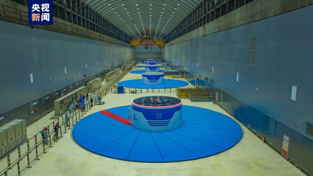 白鹤滩水电站左右岸共安装16台,目前世界上单机容量最大的百万千瓦水轮发电机组,12号机组位于白鹤滩水电站右岸厂房。10月5日开始并网调试,10月14日顺利完成所有既定调试项目正式投产发电,实现了“一次安装完成、一次启动成功、一次调试成功”。