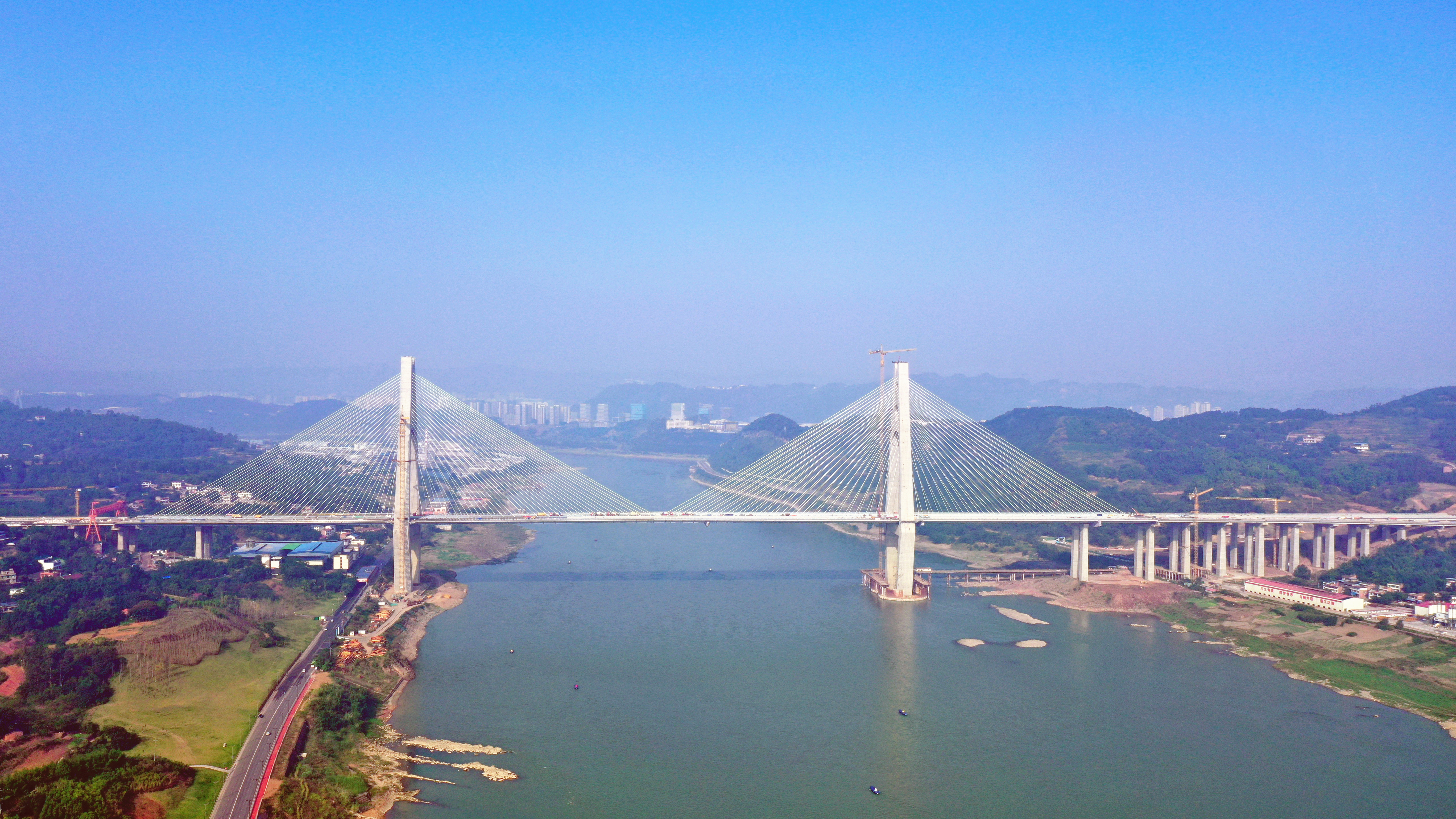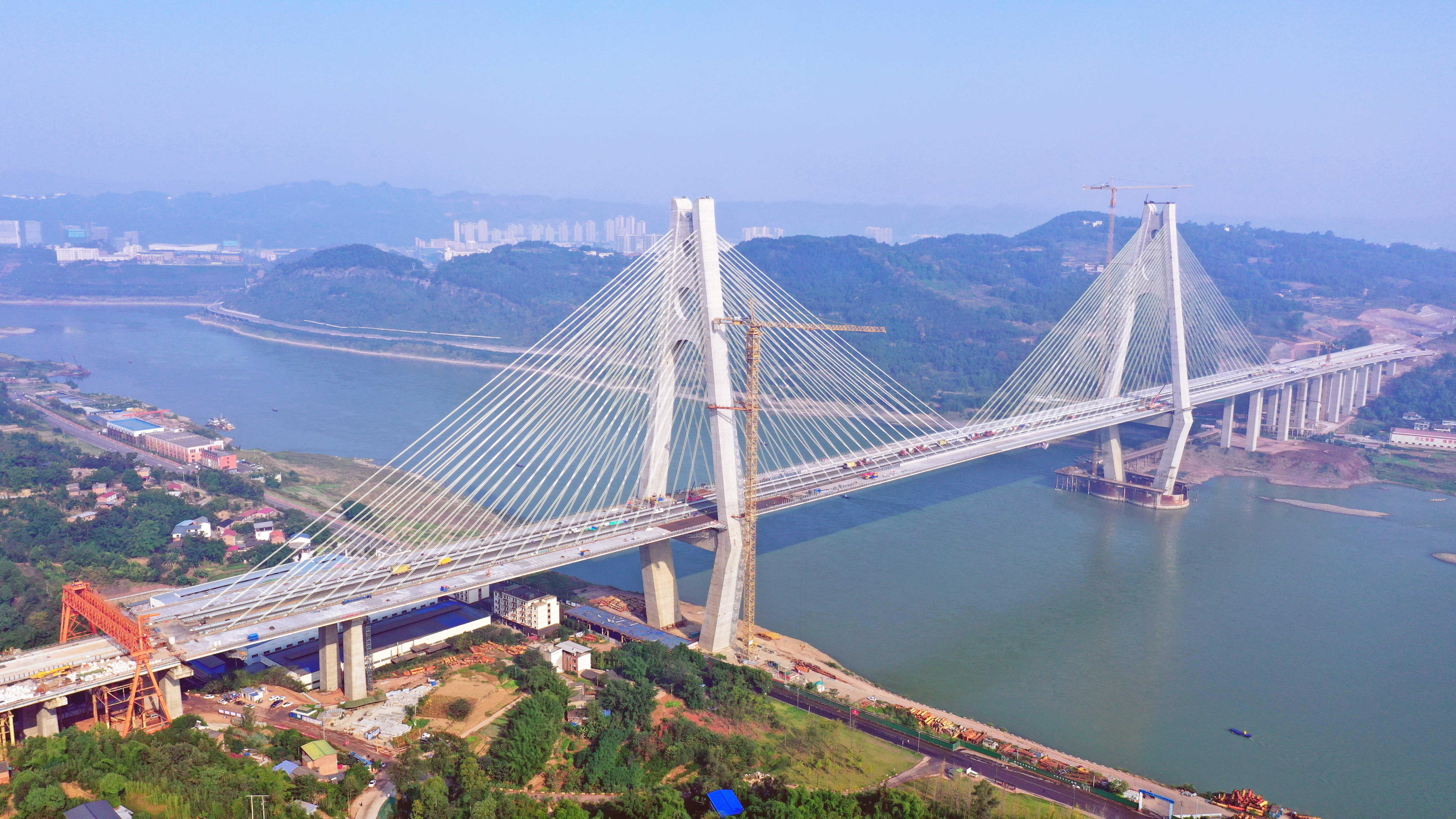 大桥主体工程主要包括大桥主引桥基础、梁体、主塔、斜拉索建设等,于2019年1月开工,历时4年建设完成。按照计划,川南城际铁路自宜线预计在2023年5月开始静态验收,9月开始联调联试,12月底通车。