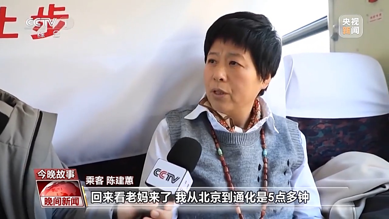 乘客 陈建蕙:回来看老妈来了,我从北京到通化是5点多钟,下了火车(高铁)我再直接坐这个车很方便。票价20块零5毛,特别便宜。