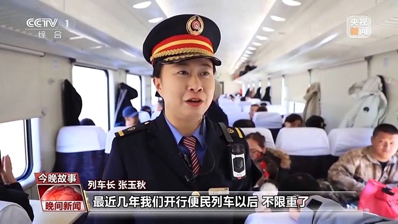 列车长 张玉秋:最近几年我们开行便民列车以后,不限重了,背多少东西上来卖都可以。