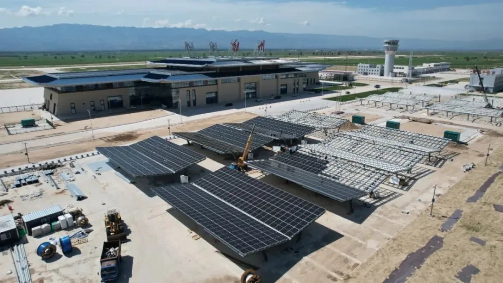 在山西省首座“零碳”机场——朔州滋润机场的施工现场,工人们正顶着高温铆足马力,为机场的顺利开通运营作最后冲刺。
