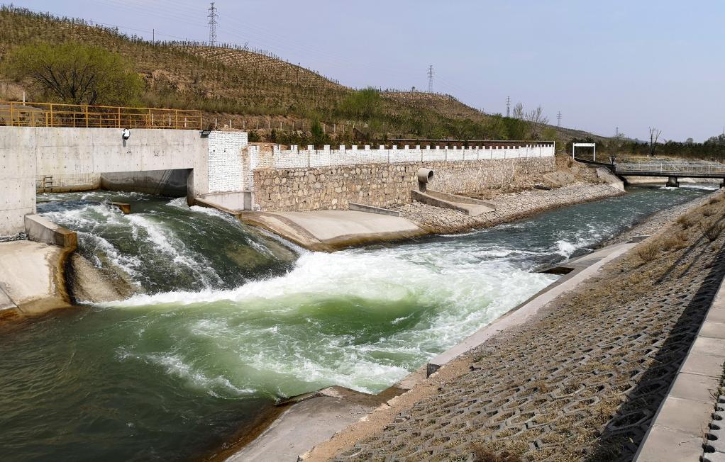 在万家寨引黄工程北干线1号隧洞口,引黄水奔流而出向下游的永定河实施生态补水。 新华社记者王飞航 摄