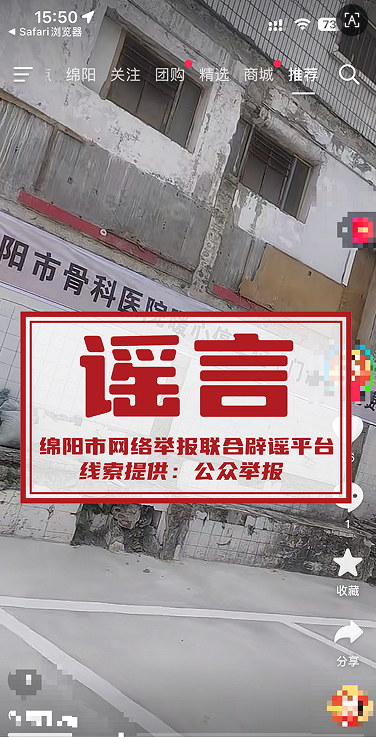 经绵阳市卫健委、绵阳市骨科医院核查确认,上述信息为不实内容,现郑重澄清事实。
