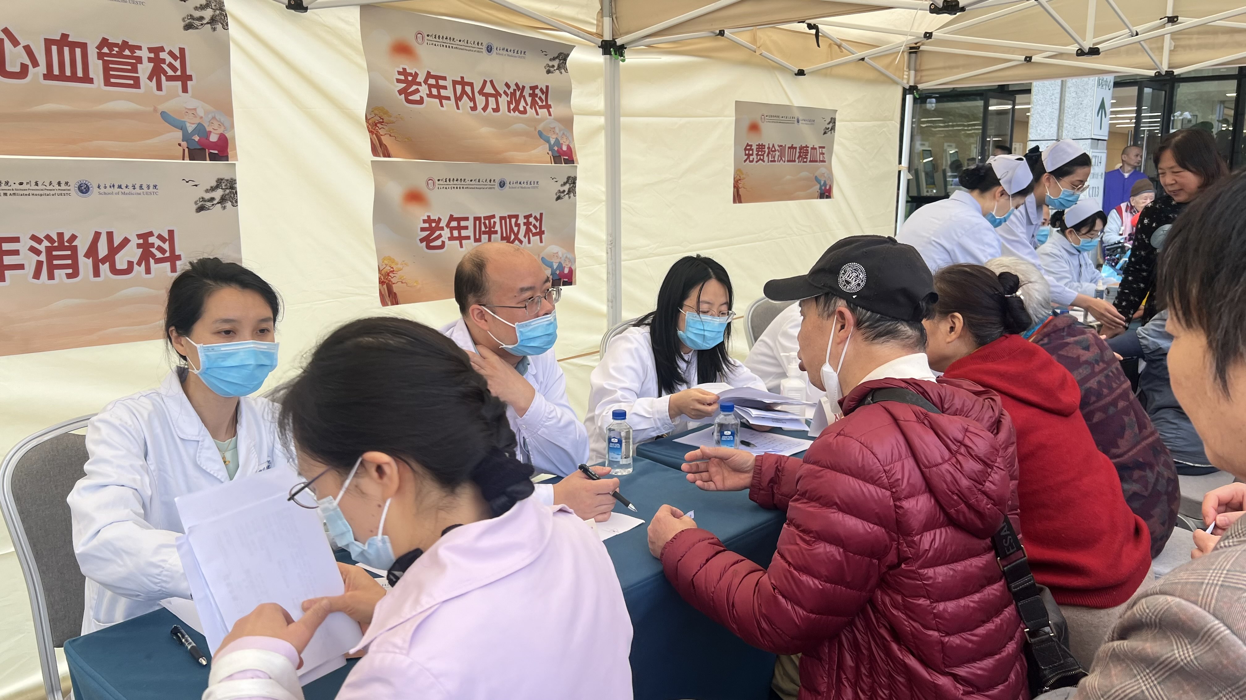 在多学科联合义诊区,来自四川省人民医院老年医学中心、眼科医学中心、心肺血管病科、中医科、康复科等17个科室40余名医护人员,围绕老年人常见病、多发病及慢性病防治等,开展了集健康咨询、养生指导、健康评估和营养建议于一体的“一站式”健康服务。血压、血糖免费检测点前秩序井然,专家们依据检测结果,为前来咨询的市民提供了专业化、个体化的建议。