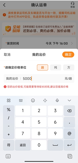 同时对于在一段时间内未成交的货源,平台也会通过技术手段自动对价格进行分析,并提醒货主对价格进行合理调整以便快速成交。