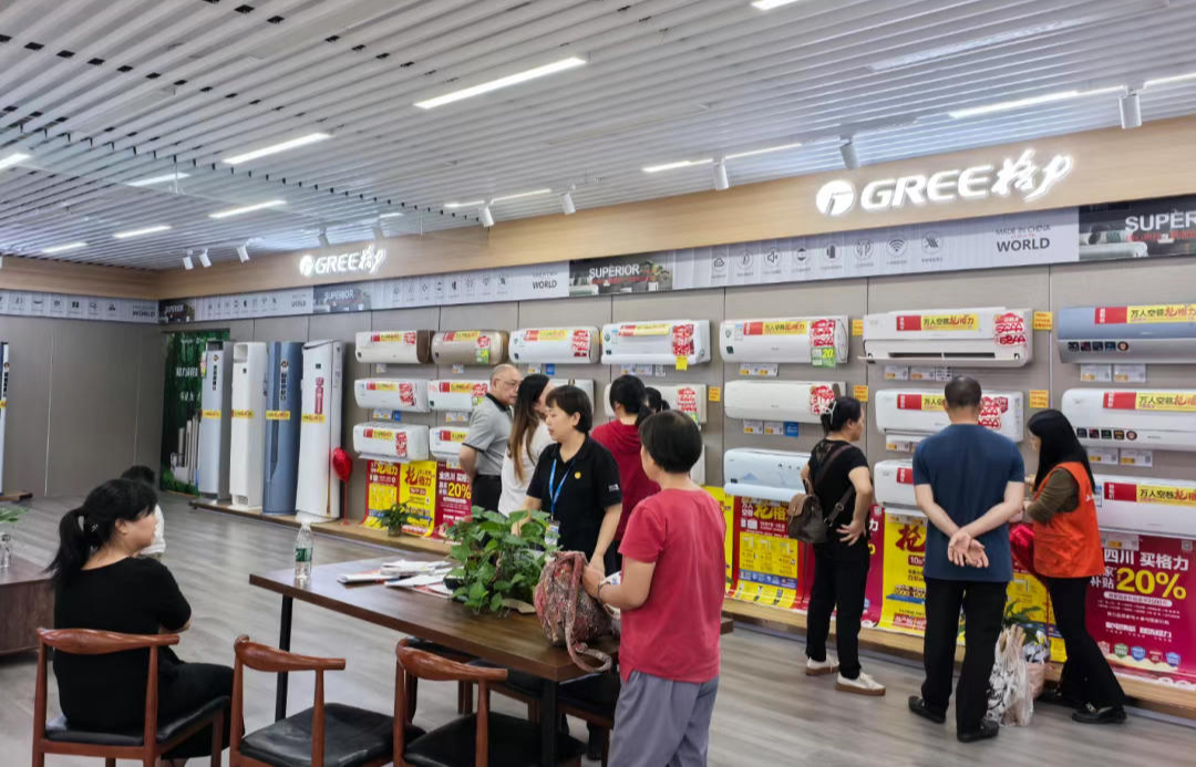 徐鹏程谈到,平时有2名收银员在岗,国庆期间增加到5名,还是忙不过来。截至3日,国庆期间客流日均超3000人次,销售额同比增长94.1%。他表示,自四川省开展家电以旧换新活动以来,店里的生意明显好了很多。而后活动福利加码,补贴家电类别更多、折扣力度更大、补贴操作更便捷,更是促进了店内的成交。近几个月家电销量一直处于增长趋势。