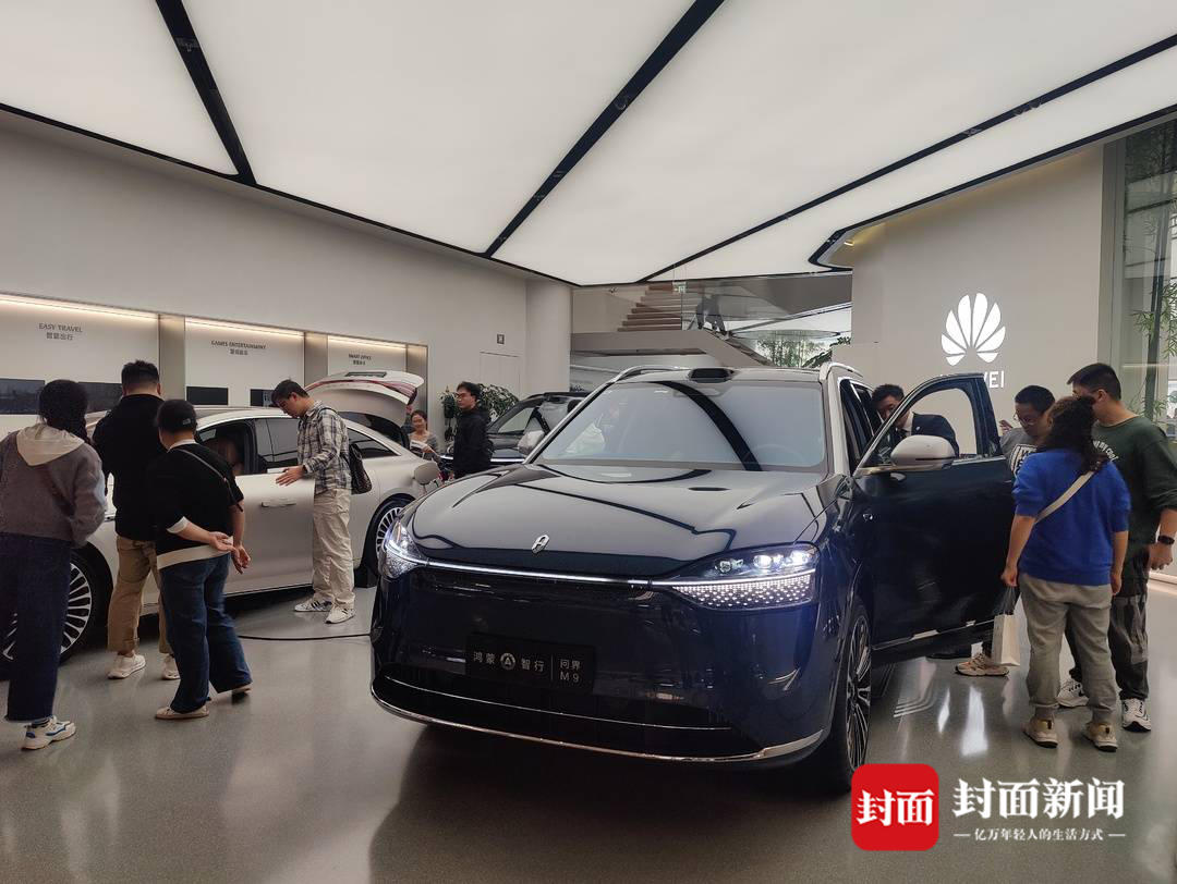 在成都万象城C馆,看车的人群络绎不绝,俨然一场小型车展。理想、小鹏、华为鸿蒙智行、智己、蔚来等众多新能源汽车均开设了展示销售中心。