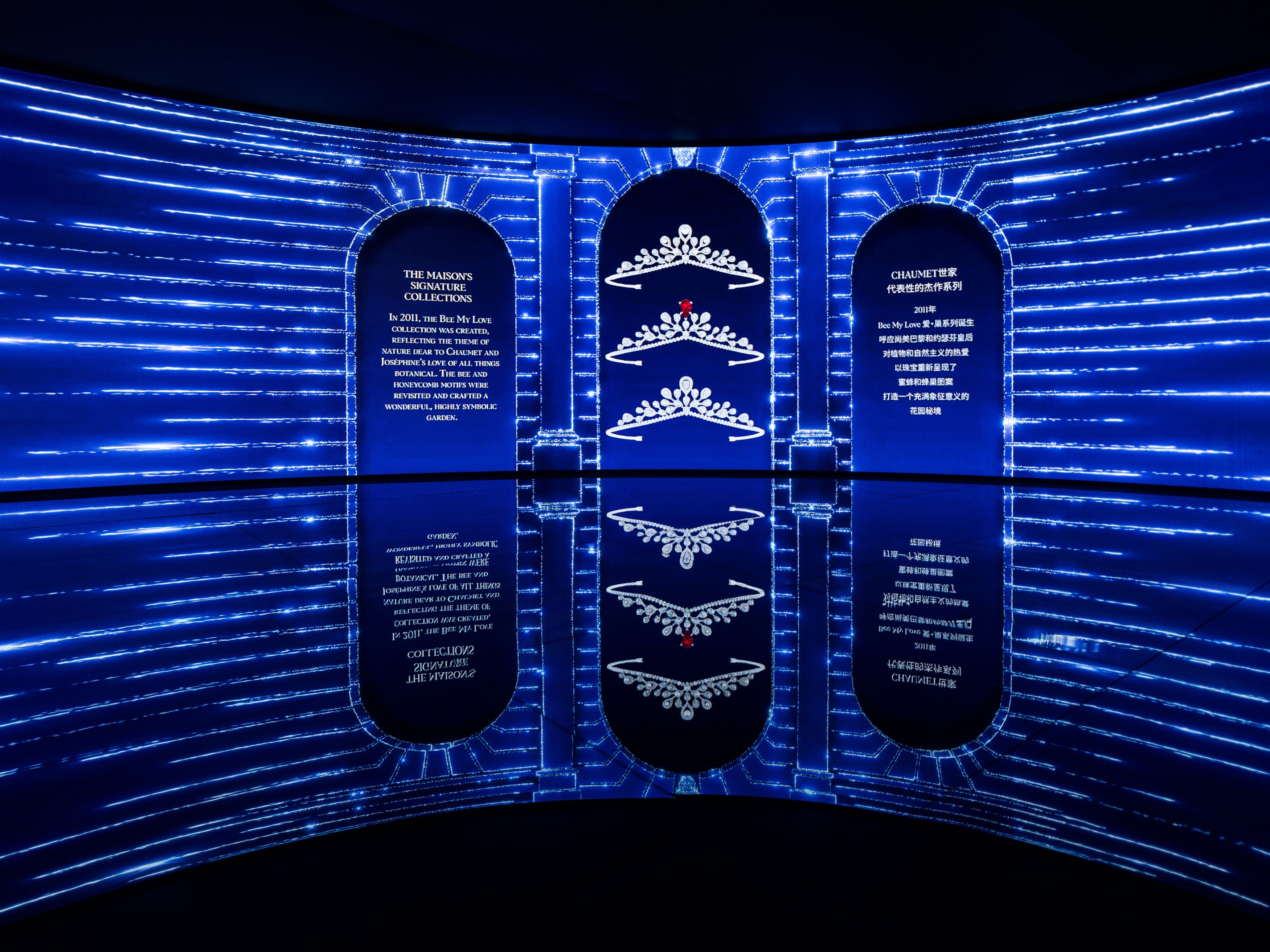 CHAUMET尚美巴黎于上海北外滩国客中心· 虹空间艺术中心呈现“Tiara Dream冠冕绮梦”沉浸式互动体验,甄选展出古董冠冕旷世典藏与当代冠冕杰作,创作年份跨越210年,亦包含首次来到中国的珍贵冠冕作品,结合原始手绘稿、黑白胶片及藏家照片,立体呈现尚美世家独树一帜的深厚积淀,同时运用当代的陈列装置与互动方式,将始自巴黎芳登广场的荣耀传奇延续至沪上,为观众创造出沉浸式探索“尚美之冠”的摩登体验。展览将对公众开放至10月15日。