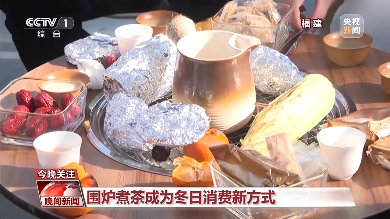除了吃火锅,户外围炉煮茶,也越来越受到年轻人的青睐,这种传统与现代相结合的餐饮方式,已经成为人们社交消费的新选择。在福建武夷山茶博园,许多游客来这里一边喝茶吃点心,一边享受难得的休闲时光。以围炉煮茶为代表的新式饮茶方式,燃起了人们对冬天的热情,也让游客感受到茶文化的独特魅力。