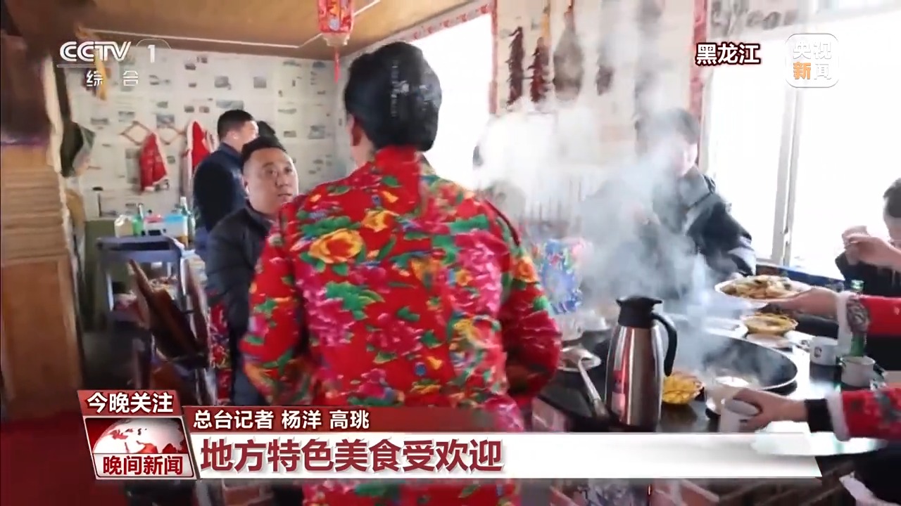 随着气温走低,不少地方特色美食,也备受消费者青睐。在黑龙江尚志市青山村,老板娘正在给南方来的游客介绍东北的特色美食铁锅炖。