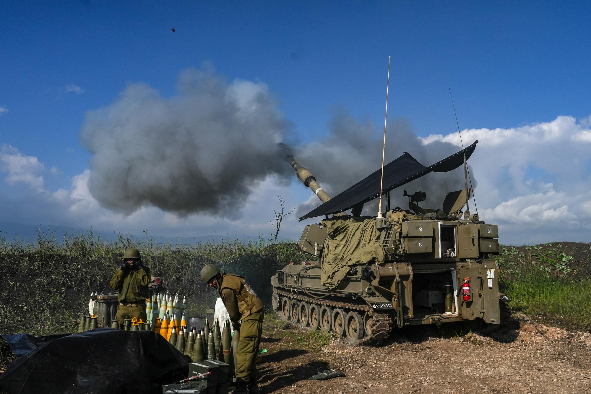 1月4日,在以色列北部边境,以军的一门自行榴弹炮向黎巴嫩南部开火。新华社发(阿亚尔·马戈林摄/基尼图片社)