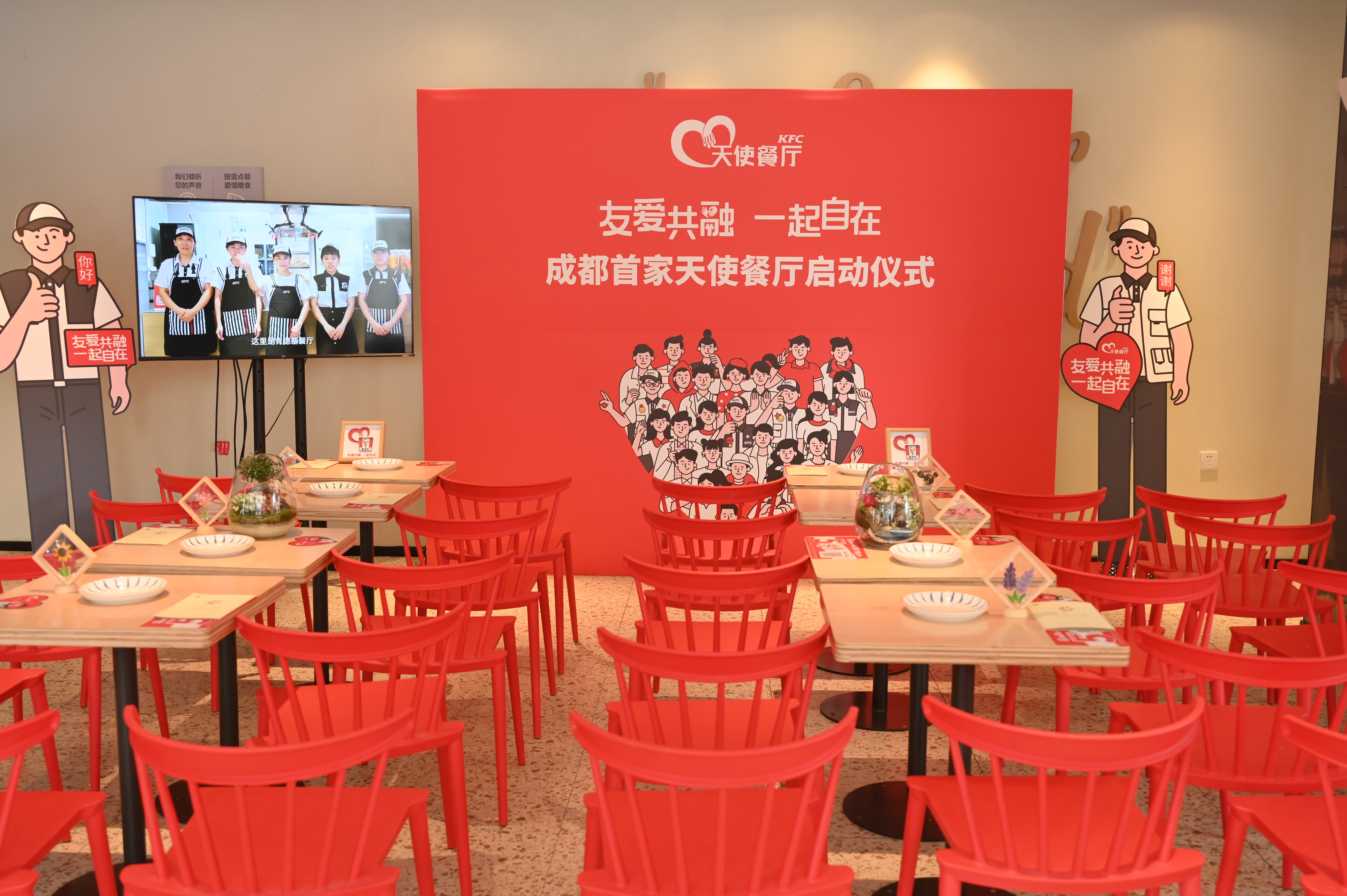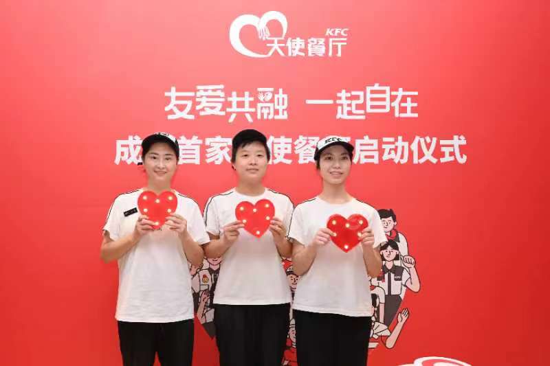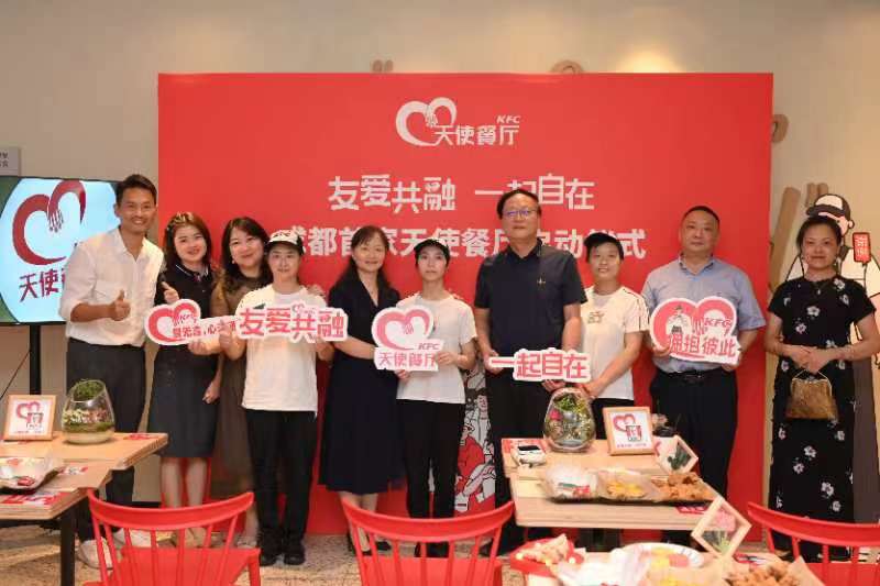 餐桌为媒,参建包容社会。昨(20)日,在第五届国际手语日来临之际,位于成都市科华北路的王府井百货的肯德基餐厅,成为以关爱残障人士为主题的“天使餐厅”正式揭幕。同时,还获得由成都市人民政府残疾人工作委员会授予的“牵手‘福’蓉·双百双千”公益助残单位。
