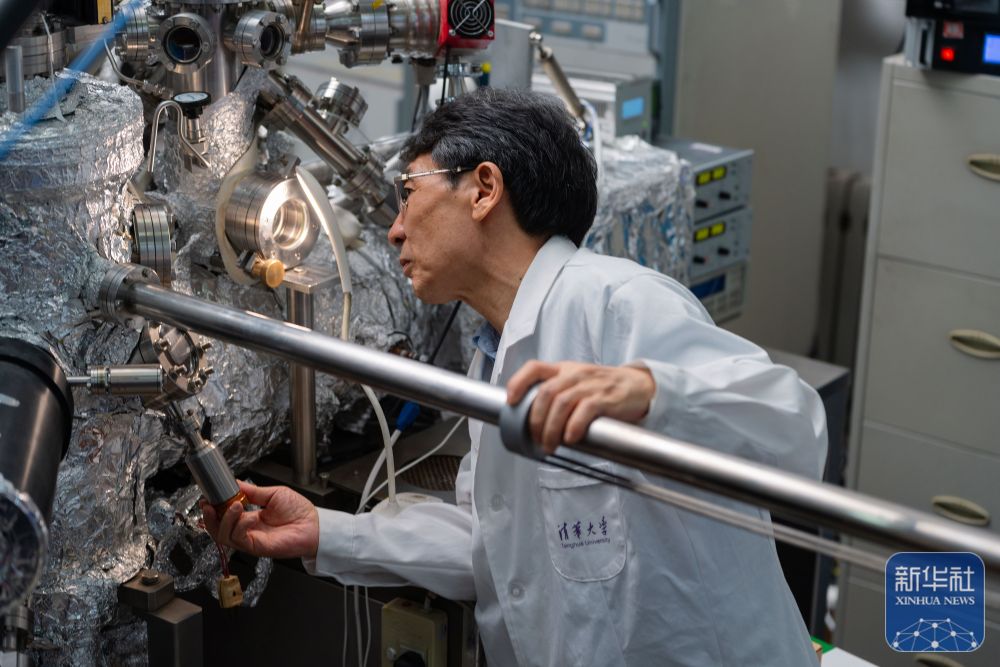 ↑2024年6月13日,薛其坤在清华大学低维量子物理国家重点实验室操作实验仪器。新华社发(李宙 摄)